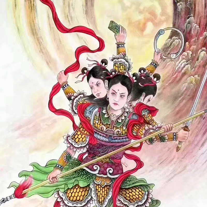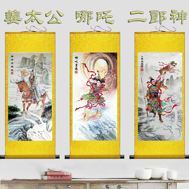 📚 二郎神画像姜子牙太公神像哪吒三太子卷轴挂画客厅卧室宿舍装饰画