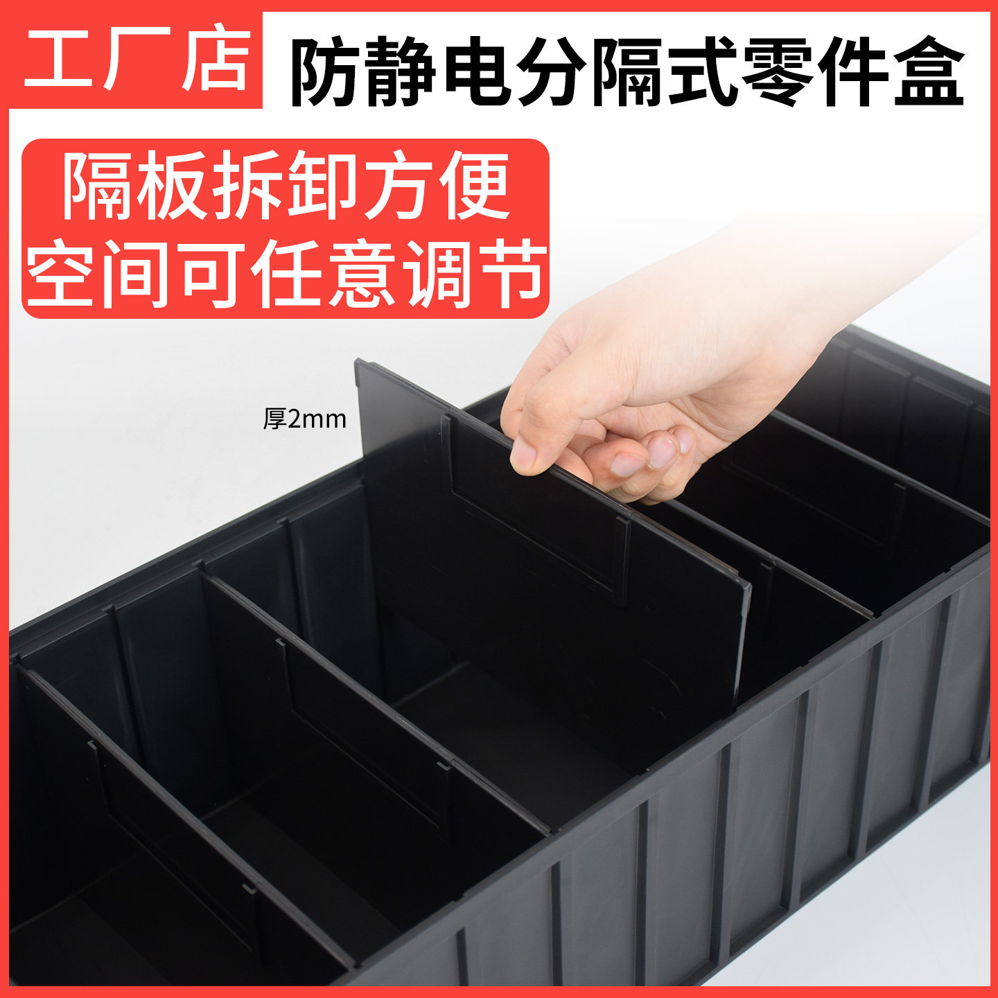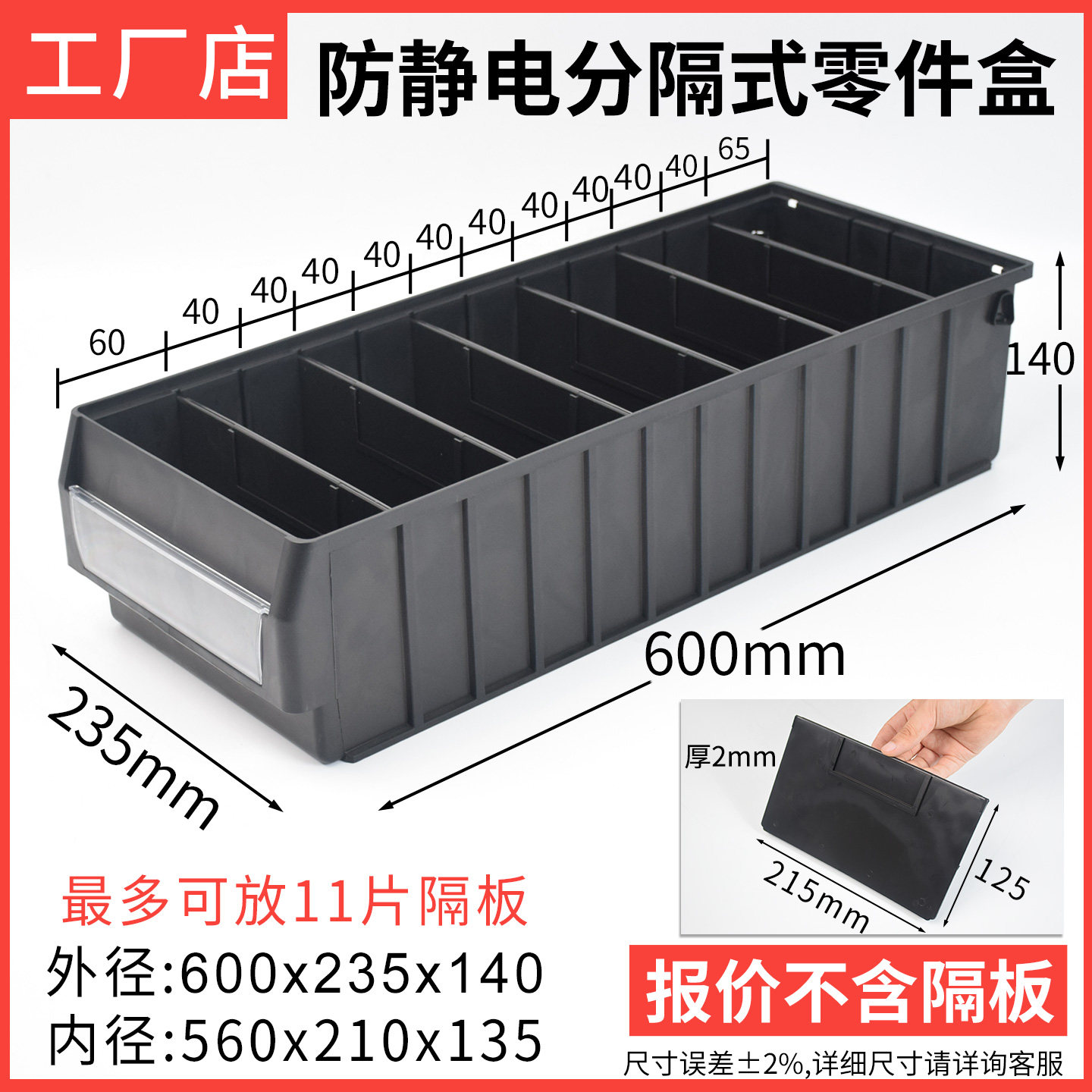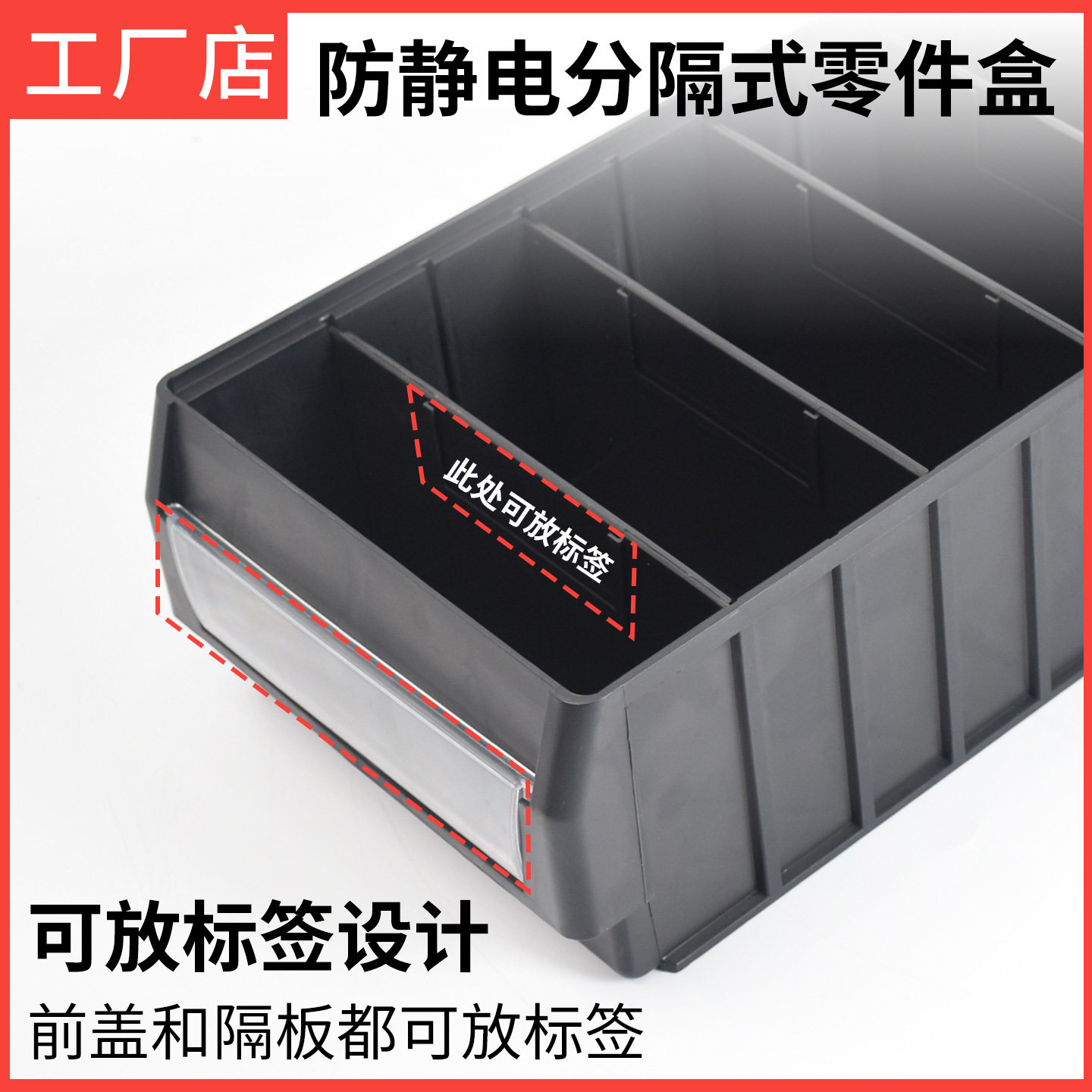 📚 防静电分隔式零件盒周转箱长方形收纳盒仓库货位条形分格箱带格子