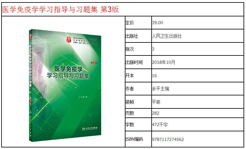 49¥ HU108 IevjU9UYVxt¥ https://m.tb.cn/h.7GMaAP2 正版 医学免疫学学习指导与习题集第3版三版余平第九版9十三五临床西医规划教材教辅第7七版配套试题练习册人民卫生出版社 --------------------- 【原售价】29.3元 【现售价】29.3元。