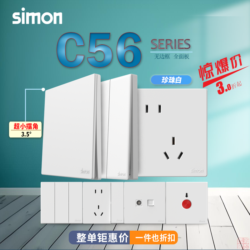 #西蒙C56系列 #珍珠白开关插座 #现代家居 #超值优惠 #一开五孔电视电脑