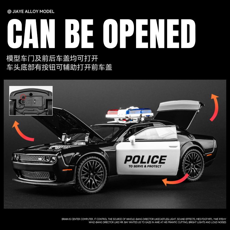 📚 合金美国道奇战马警车儿童宝宝声光回力玩具车地狱猫模型110特警