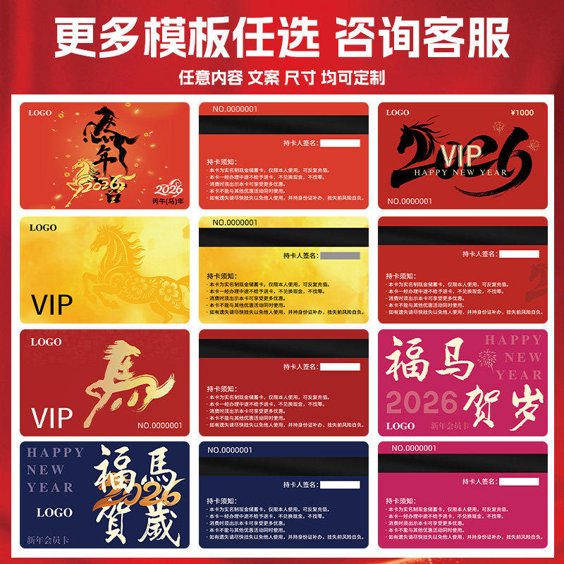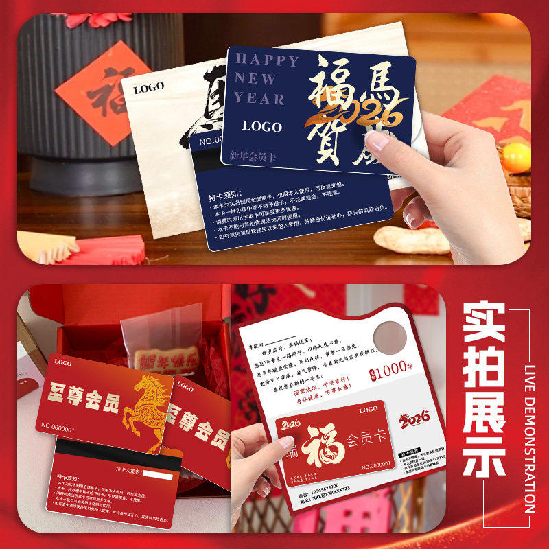 📚 新年礼品卡定制春节年货购物提货卡设计2026马年活动贵宾储值硬卡