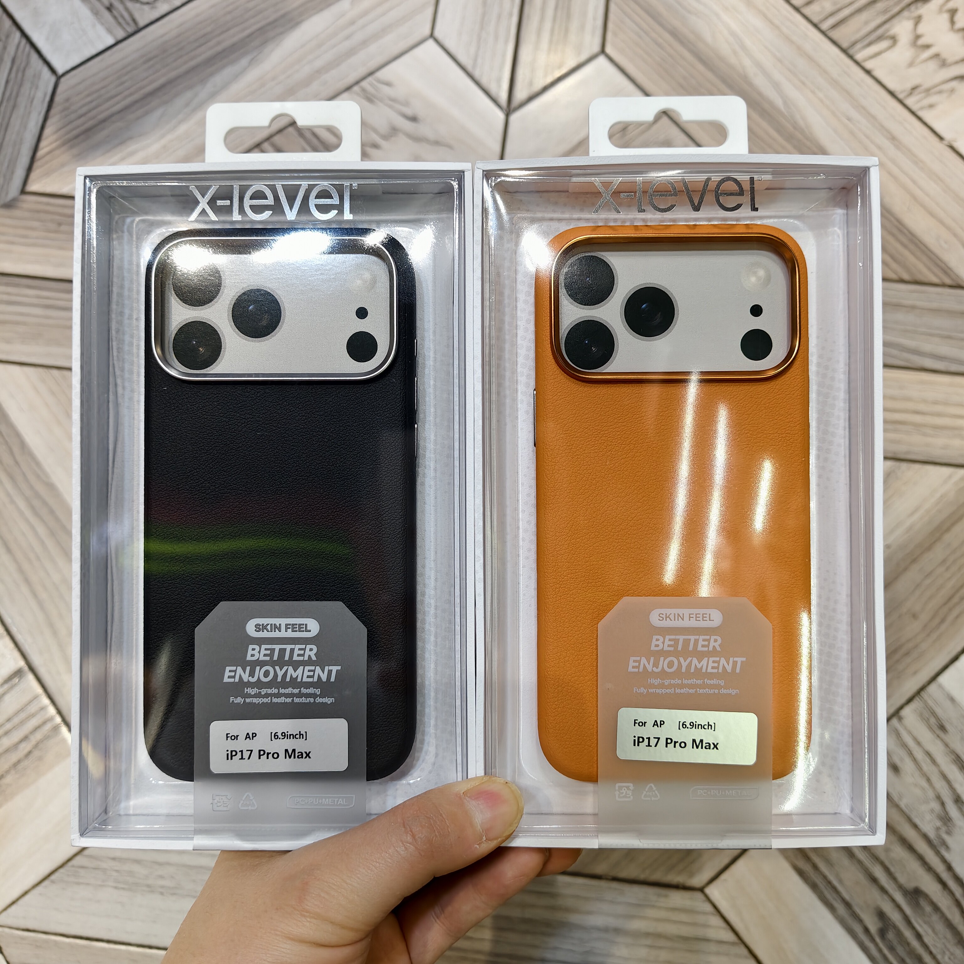 📚 X Level奢华感皮纹适用苹果iPhone17Promax摄像头加高全包边仿皮质手机保护套外壳防摔高级肤感