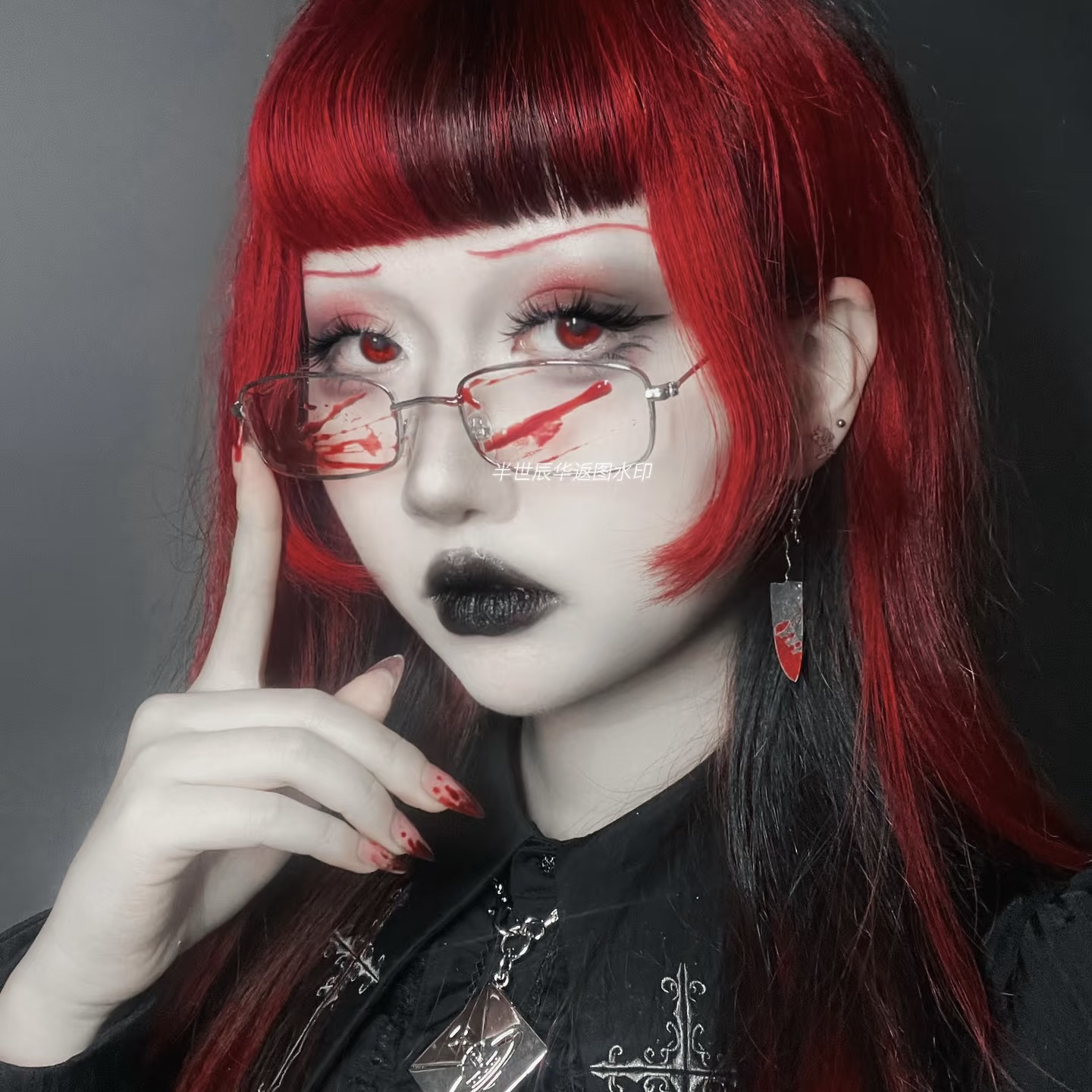 📚 现货手作血液眼镜小脸超轻oc血痕哥特病娇女cos亚二次元动漫人物