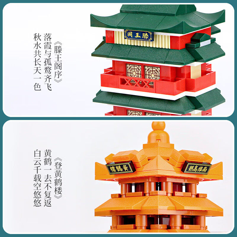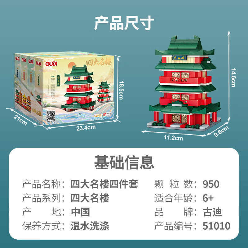 📚 古迪积木四大名楼积木 黄鹤楼滕王阁国潮街景儿童拼装玩具6岁以上