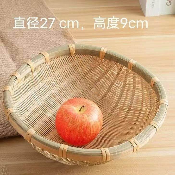 📚 家用手工竹编馍筐家用竹筐竹篮厨房编织藤编收纳小圆水果蔬菜框子