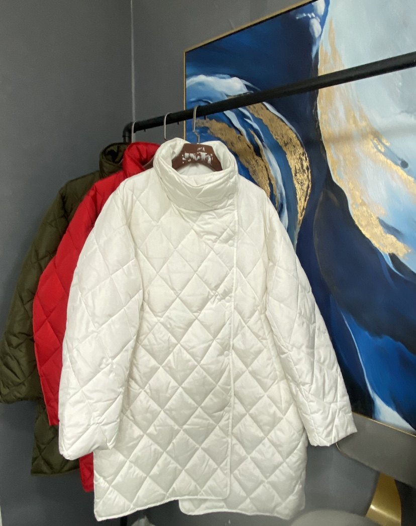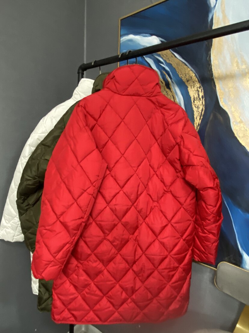 📚 M军绿白红三色菱格纹立领宽松中长款羽绒服MBO3EINX16