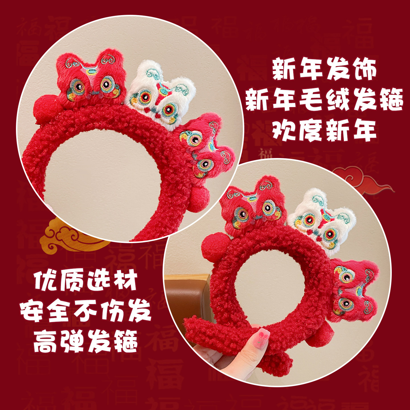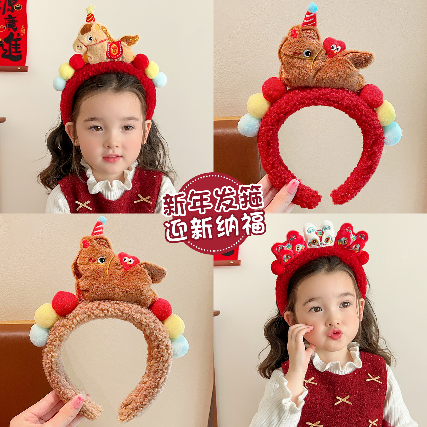 📚 新年款儿童红色发箍秋冬女童洗脸头箍羊羔毛宝宝防滑压发小马头饰