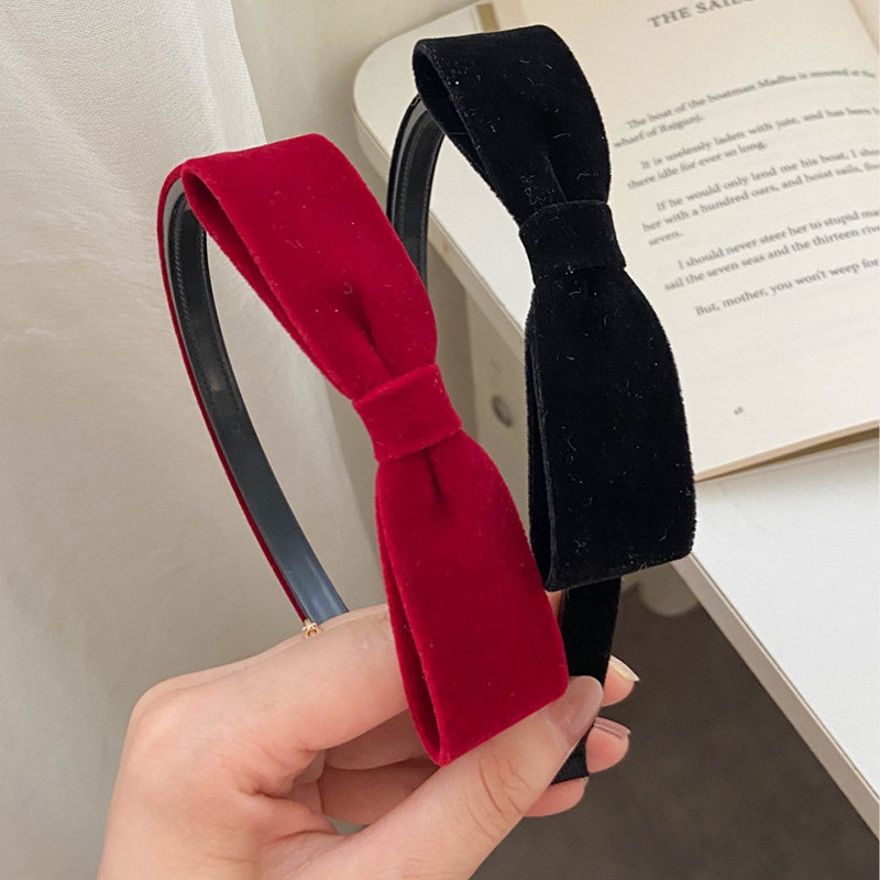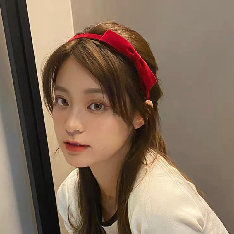 📚 丝绒蝴蝶结发箍儿童红色头饰碎发发卡女童公主不伤发防滑带齿围梳
