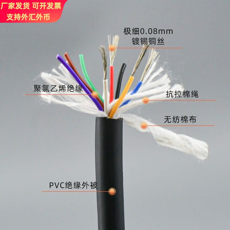 📚 TRVV高柔性屏蔽拖链电缆8芯0.2平方自动化设备用护套线耐弯折
