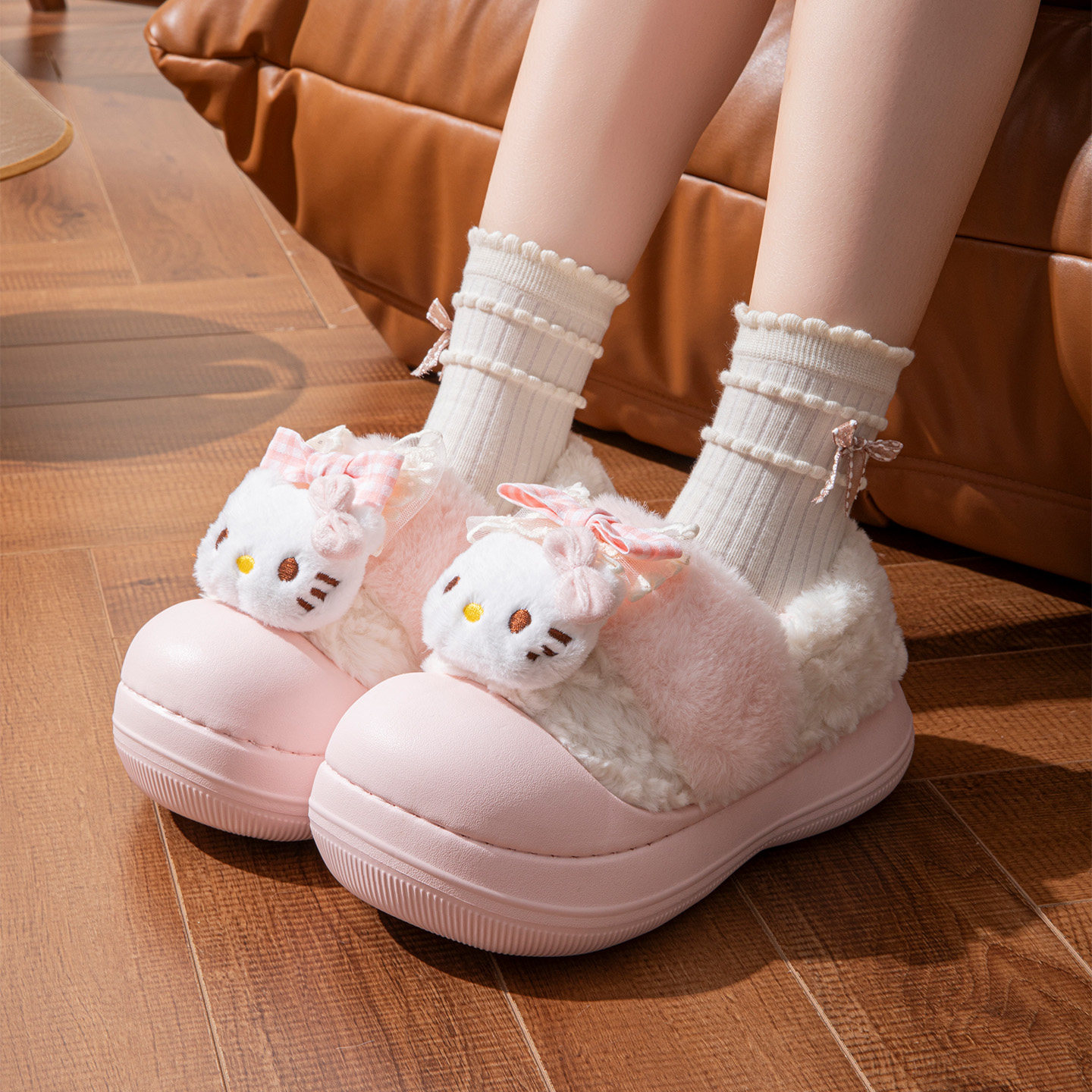📚 正版Hello Kitty 包跟棉拖鞋女冬季新款可爱居家保暖毛毛棉鞋外穿