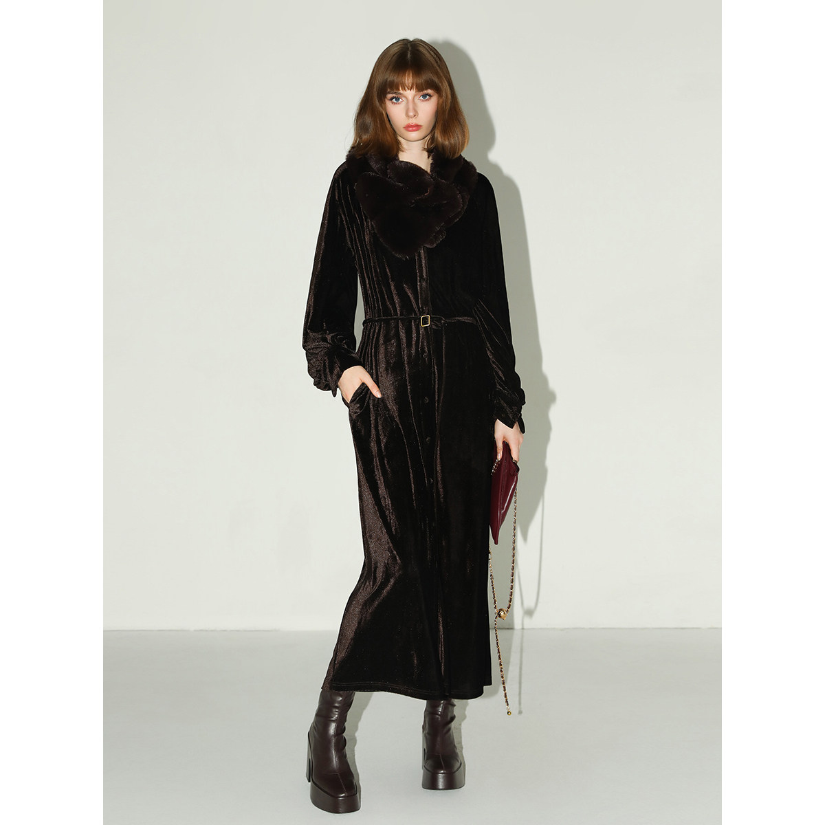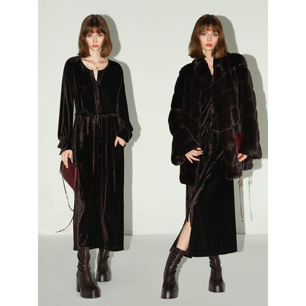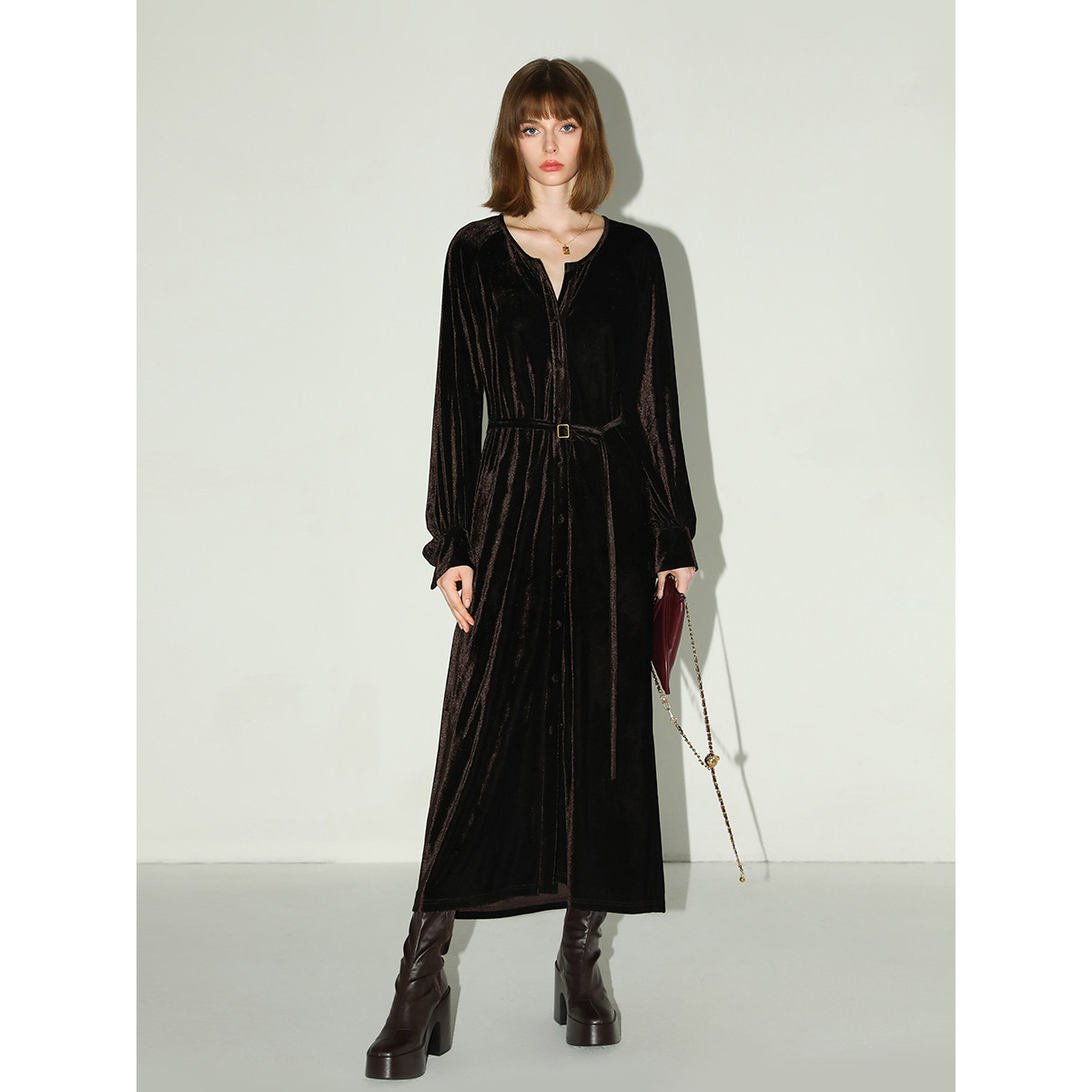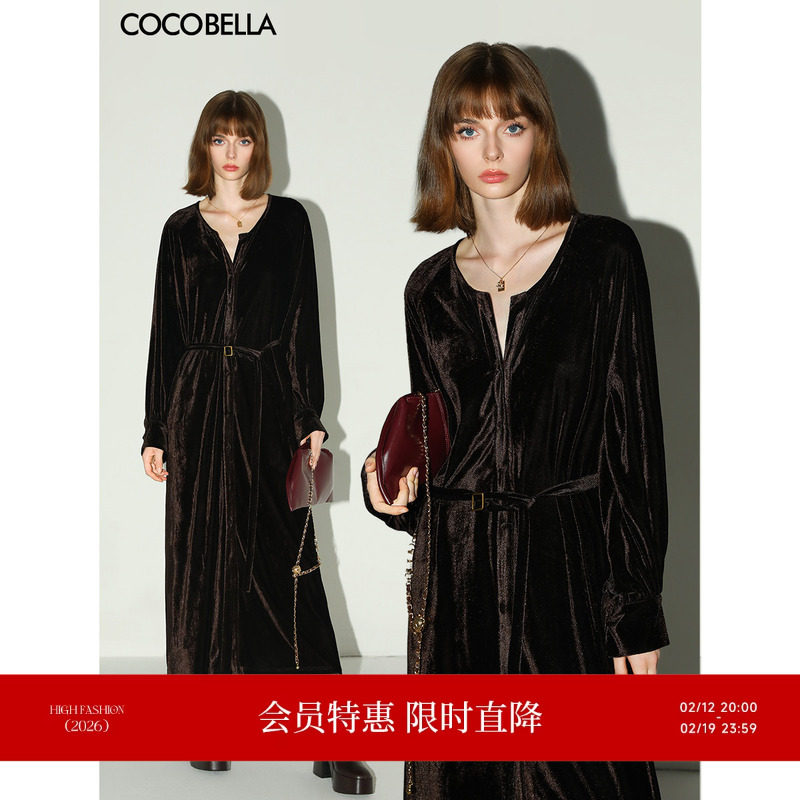 📚 COCOBELLA静奢风内搭保暖长袖连衣裙衬衫裙早春丝绒礼服裙FR7088