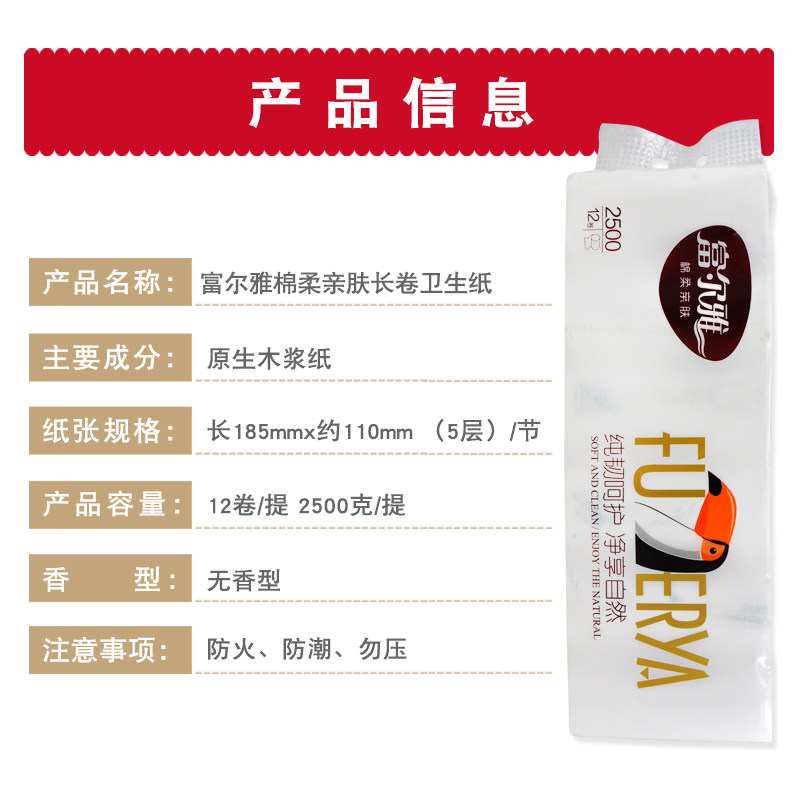 📚 富尔雅原生木浆卫生纸实心165mm长卷装妇婴家用实惠包邮
