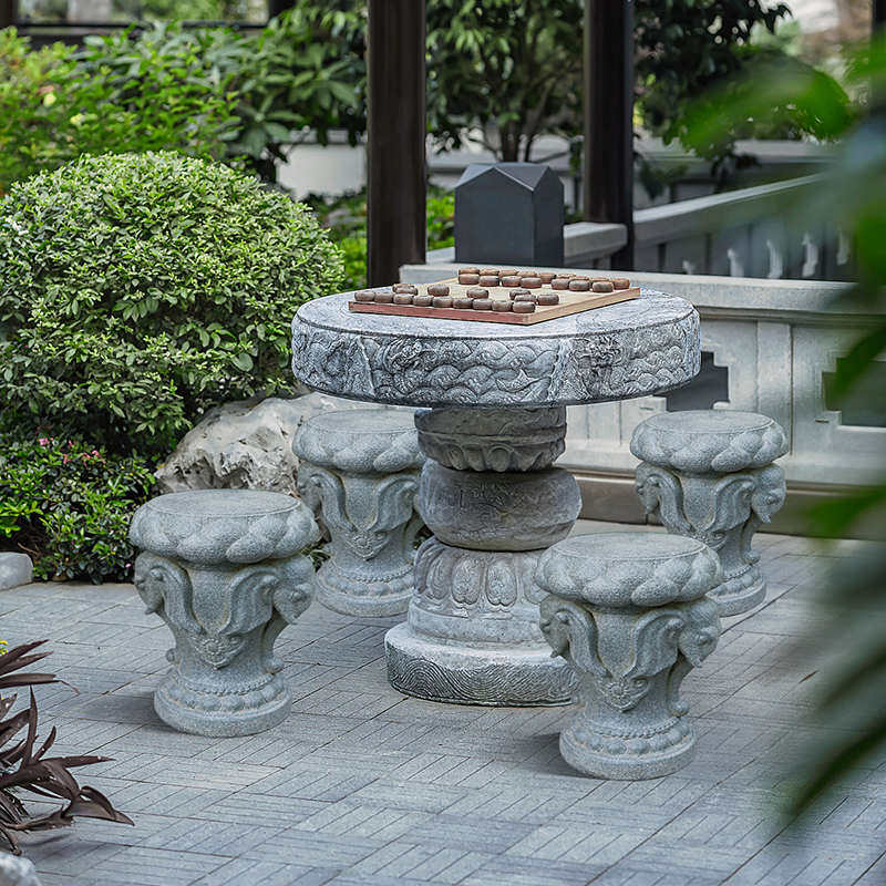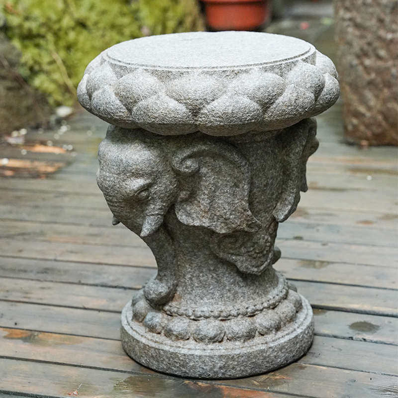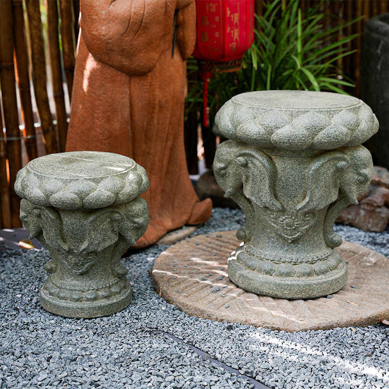 📚 水磨坊中式庭院造景布置吉象凳子户外仿石墩底座别墅花园装饰摆件