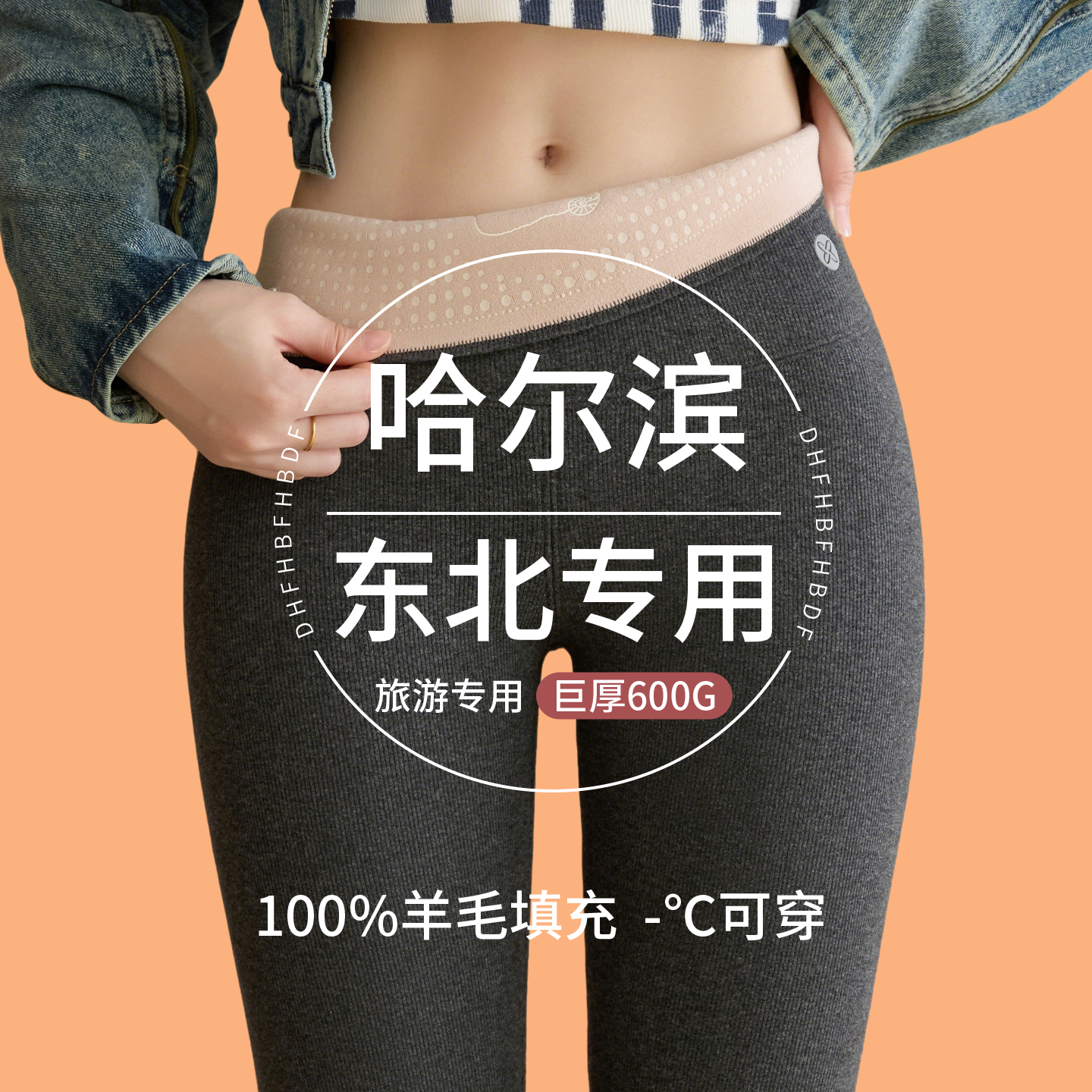 📚 哈尔滨防寒保暖裤冬季外穿女500g加绒加厚东北羊羔绒打底裤灰色