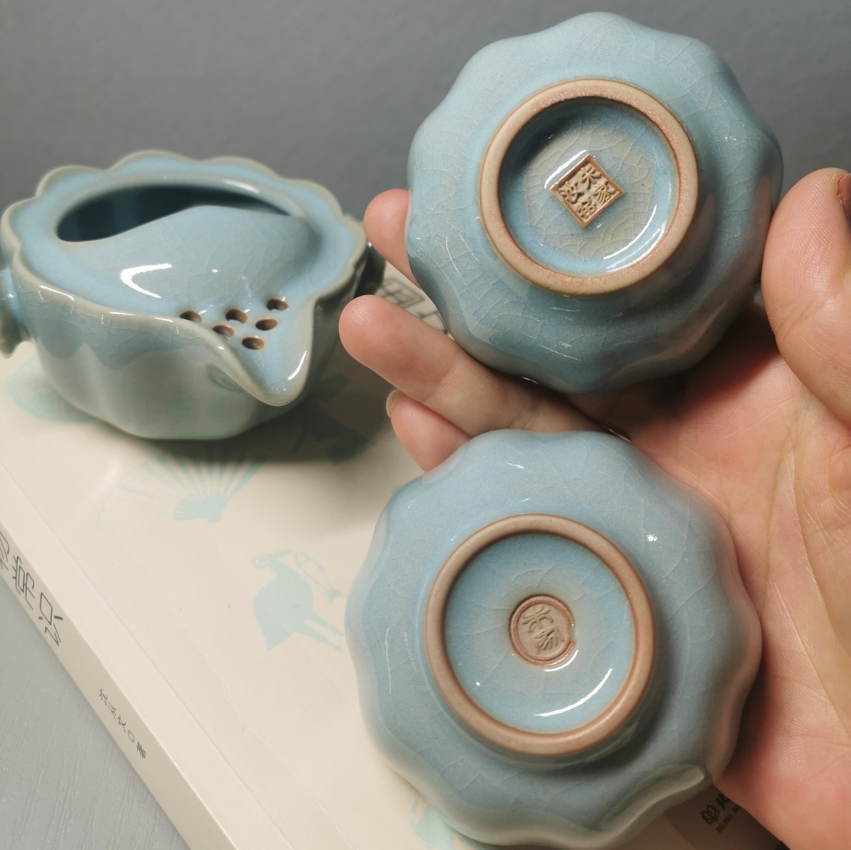 📚 原产地汝瓷便携茶具套装原矿天青朱家汝窑快客杯一壶一杯