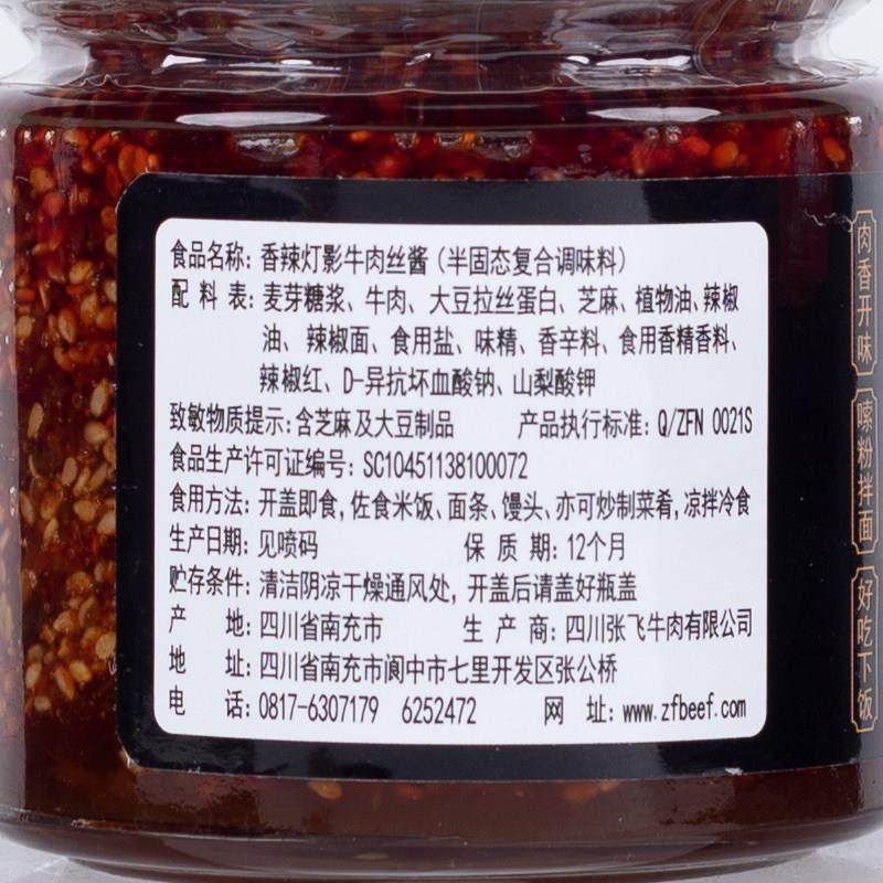 📚 张飞灯影牛肉丝酱香辣拌面 面酱下饭酱调味佐餐调味拌面 面冷食四