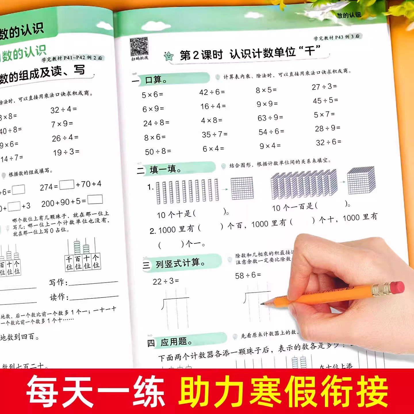 📚 二年级数学寒假口算天天练上册下册竖式脱式应用题专项训练数学练习题人教版每日一练2年级上寒假衔接作业下思维强化训练口算题卡