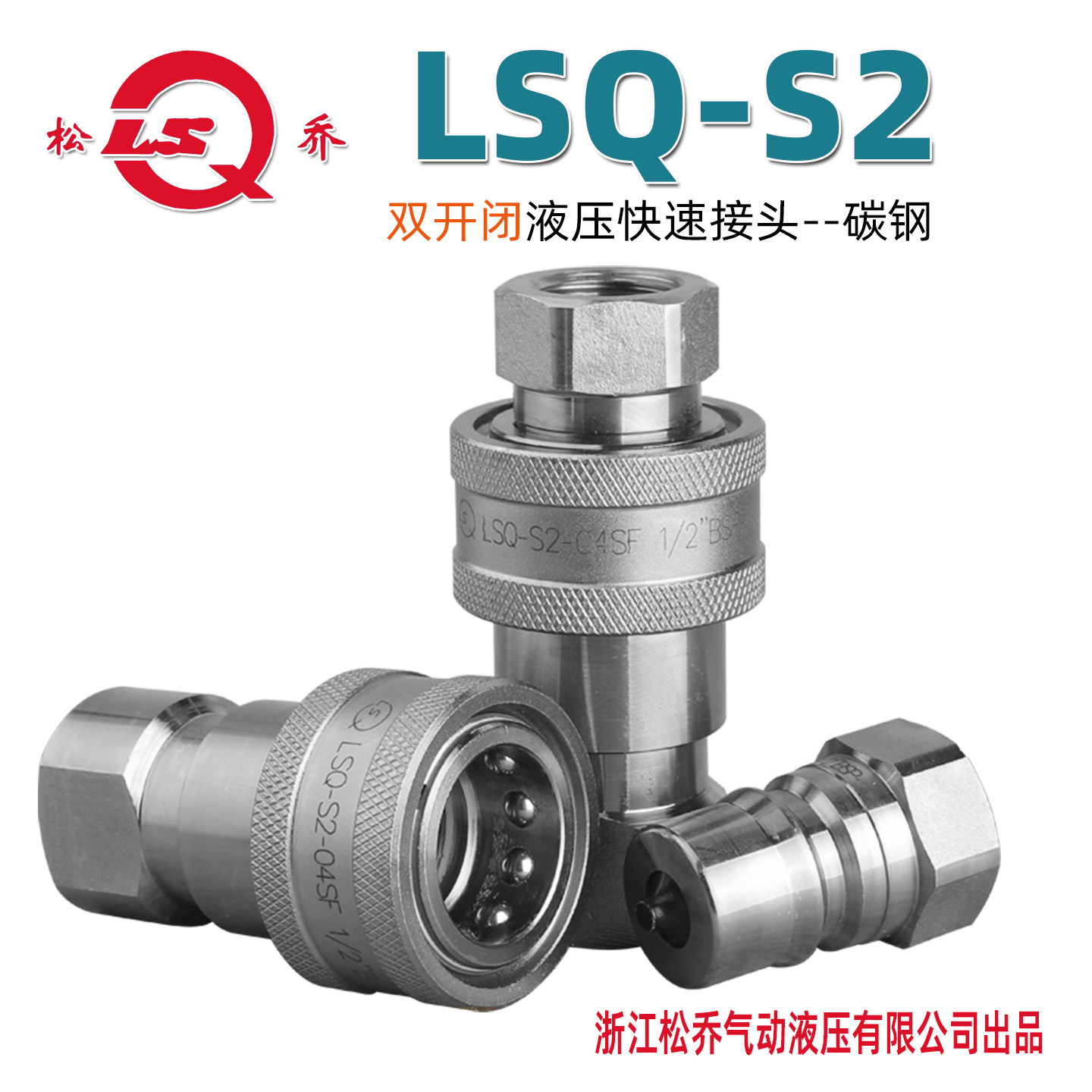 📚 浙江松乔LSQ-S2双开闭液压快速接头三价铬美制NPT牙螺纹碳钢高压