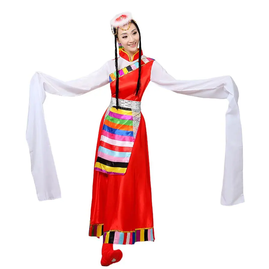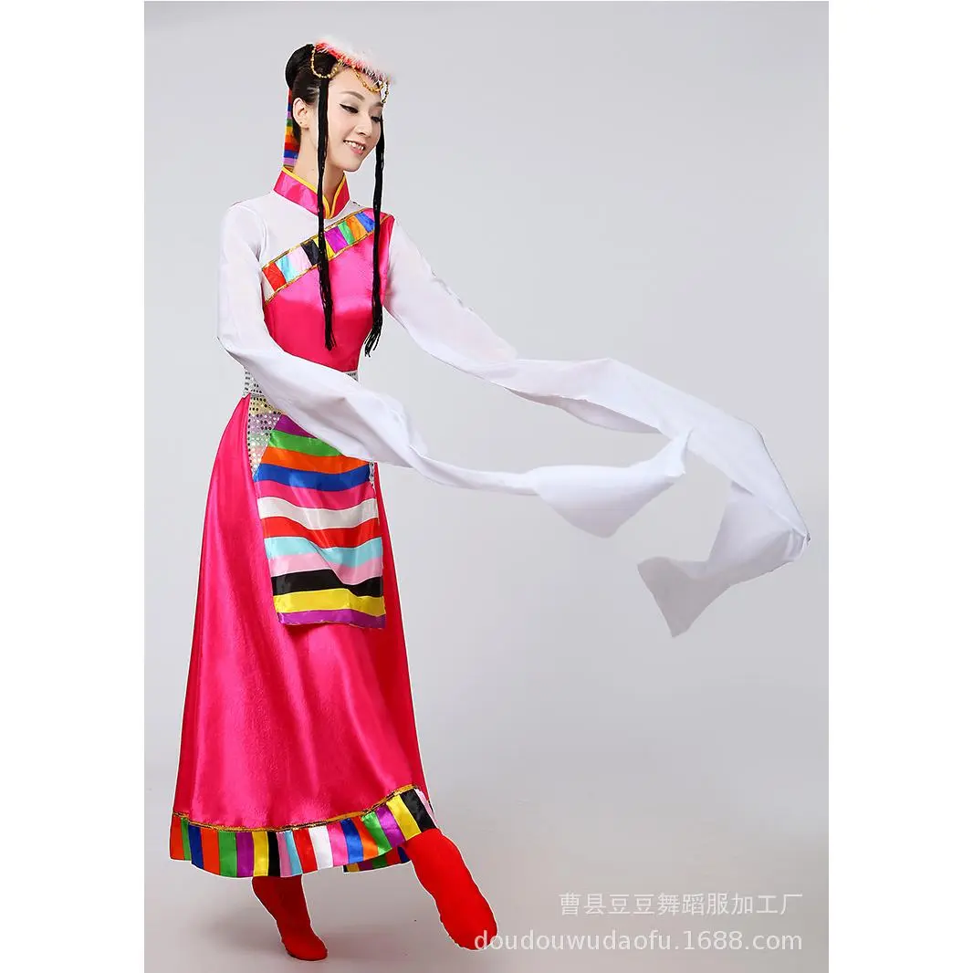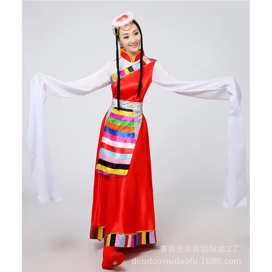 📚 新款藏族女演出服民族风藏装长袖成人短袖舞蹈表演套装水袖卓玛