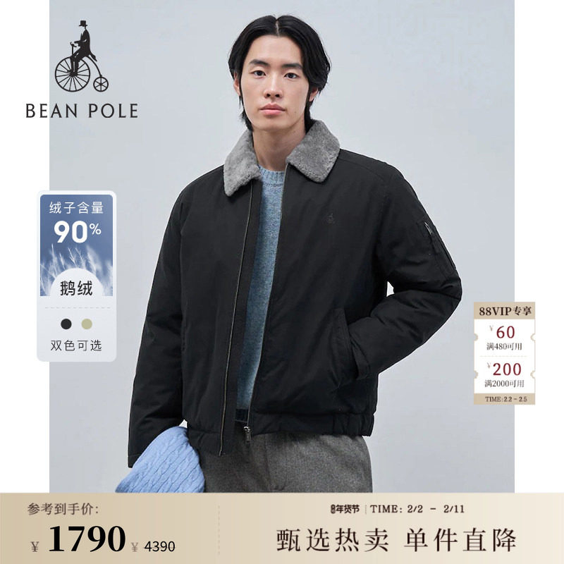 📚 90%鹅绒BEANPOLE滨波 男士羊毛皮领简约休闲基础短款商务风羽绒服