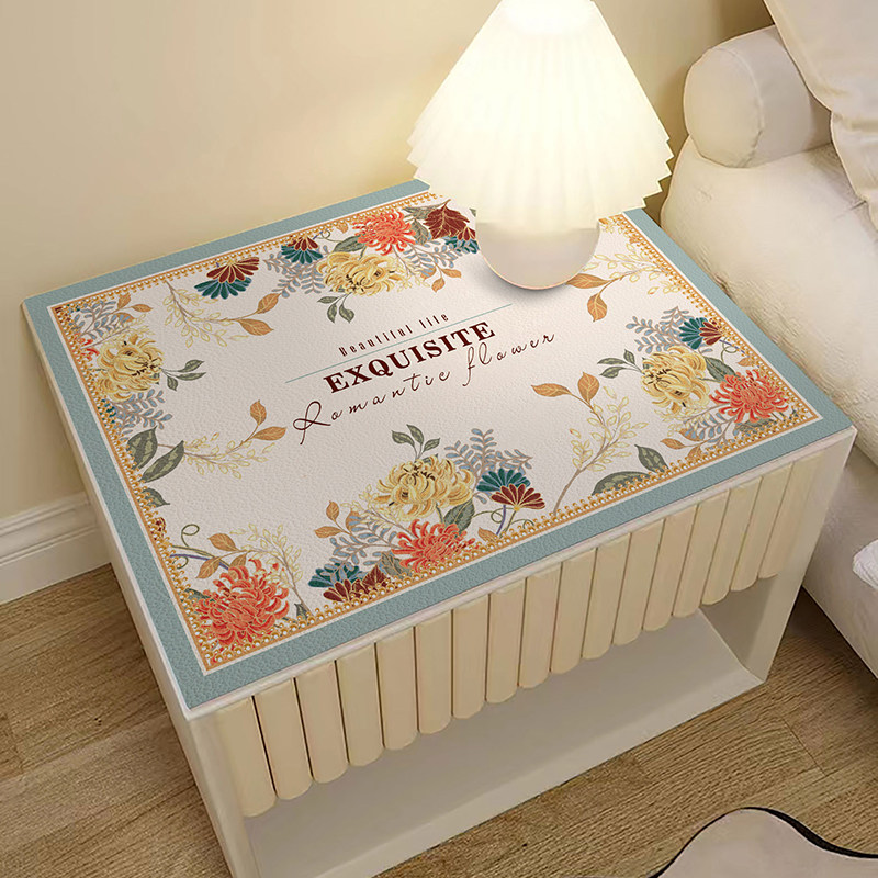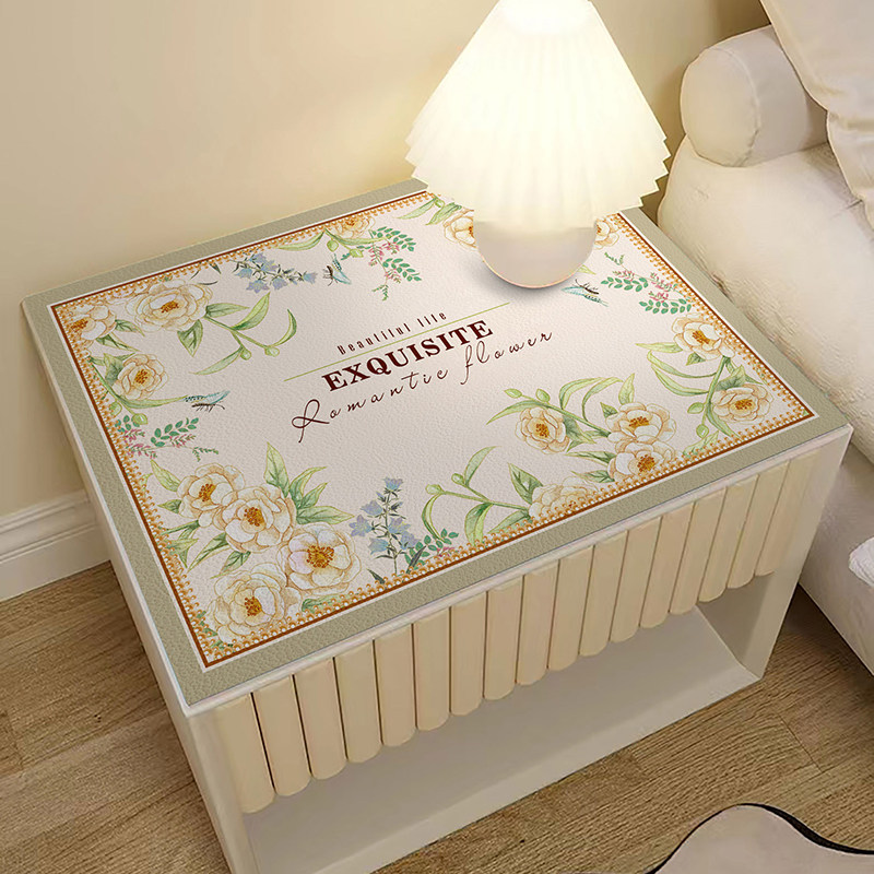 📚 美式植物花卉家用卧室床头柜皮革垫防水防油免洗皮革滚轮洗衣机布