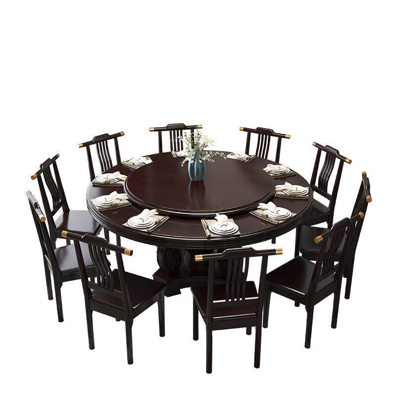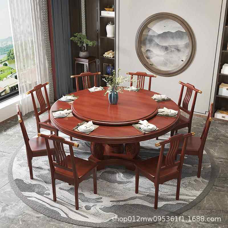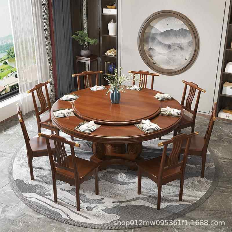 📚 江西赣州南康家具新中式实木餐桌圆形带转盘家用橡木10人大圆餐桌