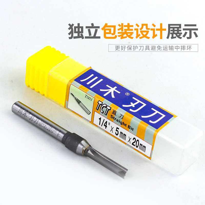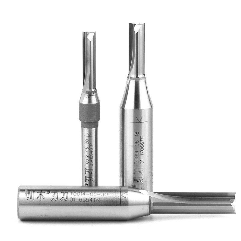 📚 川木TCT双刃直刀木工修边机刀头雕刻开料拉槽刀密度板专用铣刀1/2