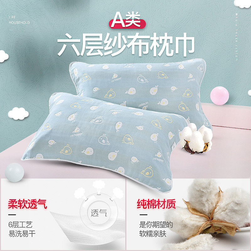 📚 儿童枕巾纯棉吸汗加厚单人纱布枕头巾一对装男女童全棉高档可固定
