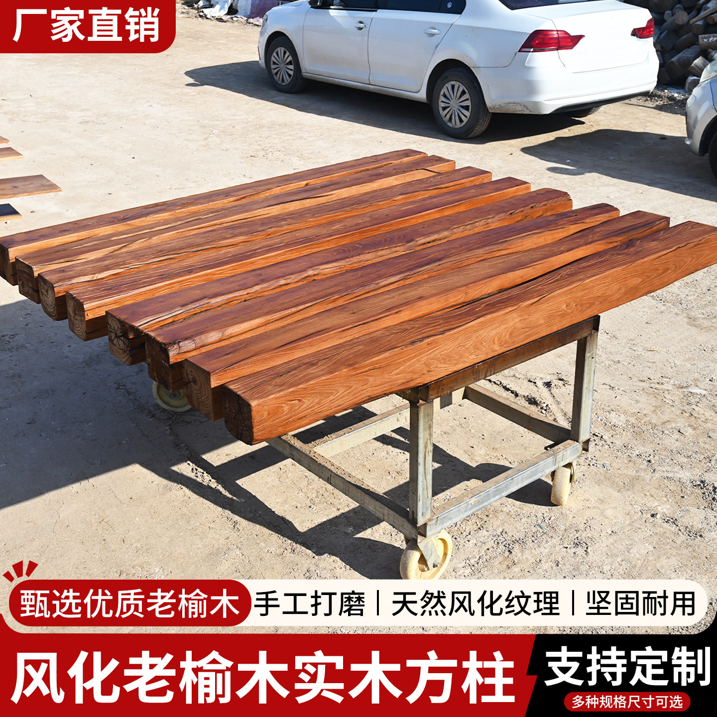 📚 老榆木方柱防腐木立柱自然风化老房梁民宿古建筑隔断装饰老木梁