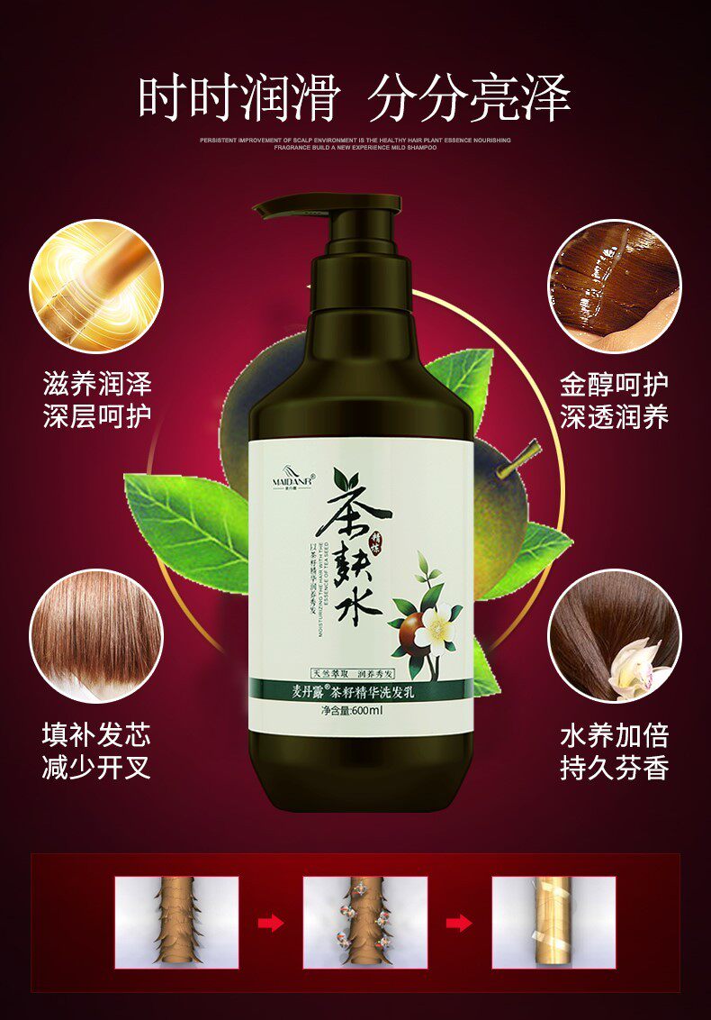 📚 麦丹露茶籽洗发水控油去屑止痒持久留香味丰盈蓬松正品茶麸洗头膏