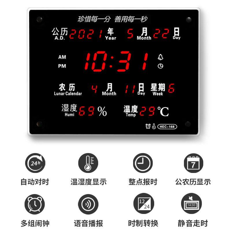 📚 河创LED数码万年历客厅电子钟数显挂墙卧室静音电子闹钟创意夜光