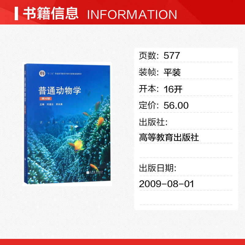 📚 【官方正版】普通动物学(第4版)(十二五新封面)/刘凌云高等教育出版社编者:刘凌云//郑光美 著作大学教材9787040267136教材练习题