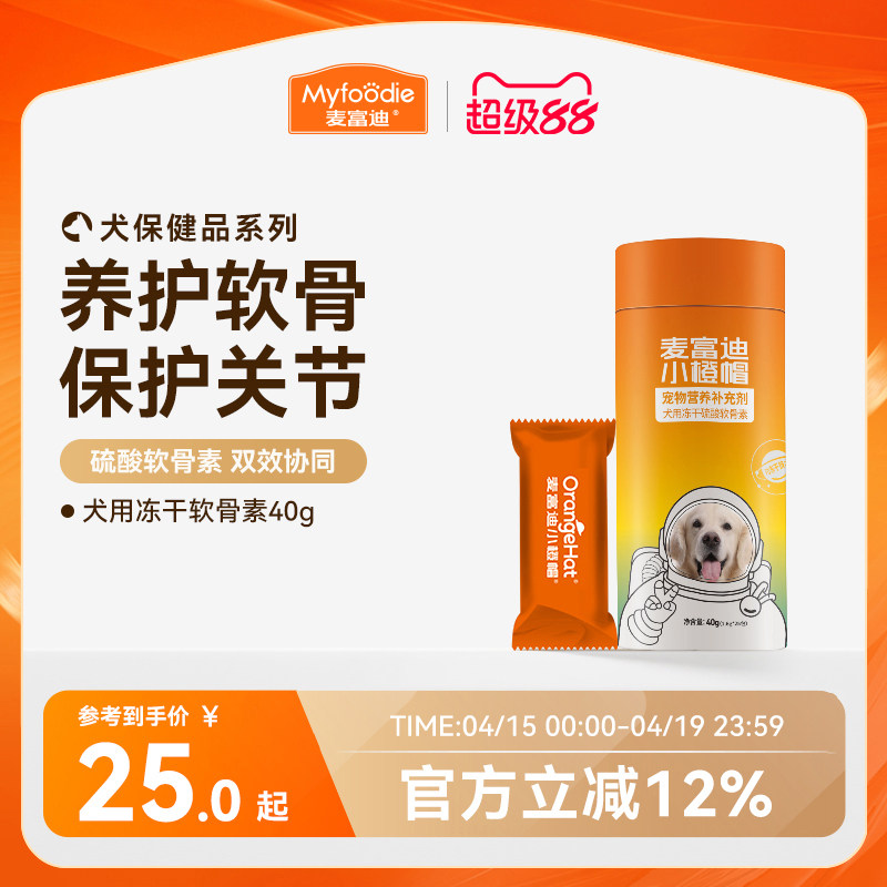 📚 麦富迪小橙帽冻干硫酸软骨素40g钙片卵磷脂宠物狗狗健骨成幼犬