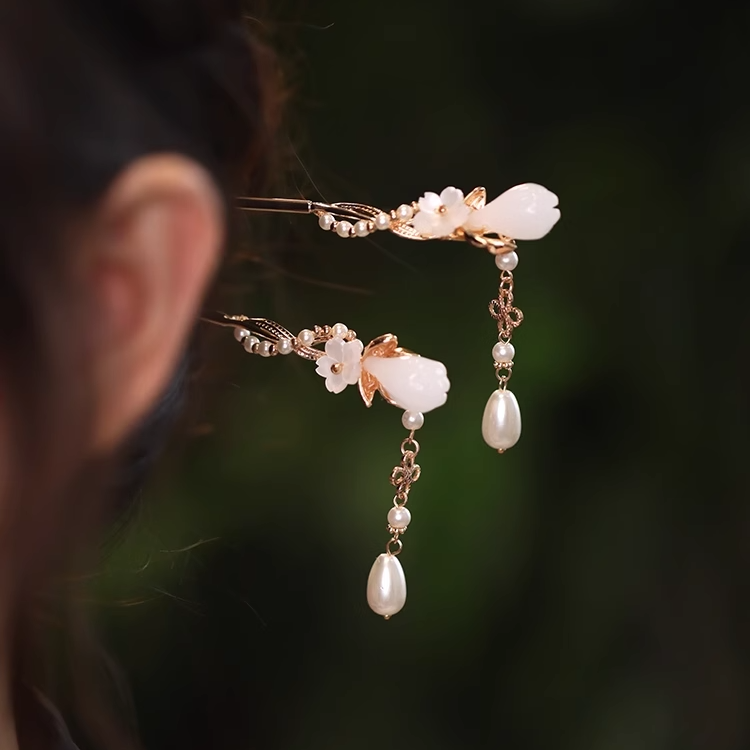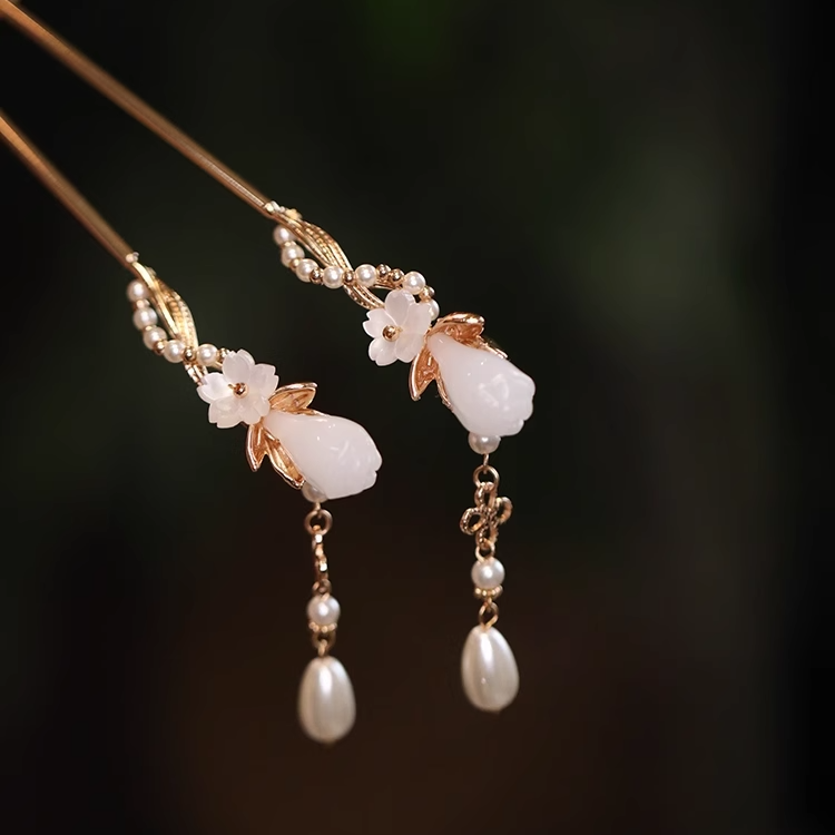 📚 玉兰汉服头饰发簪高级感盘发日常简约国风发饰簪子女古风旗袍配饰