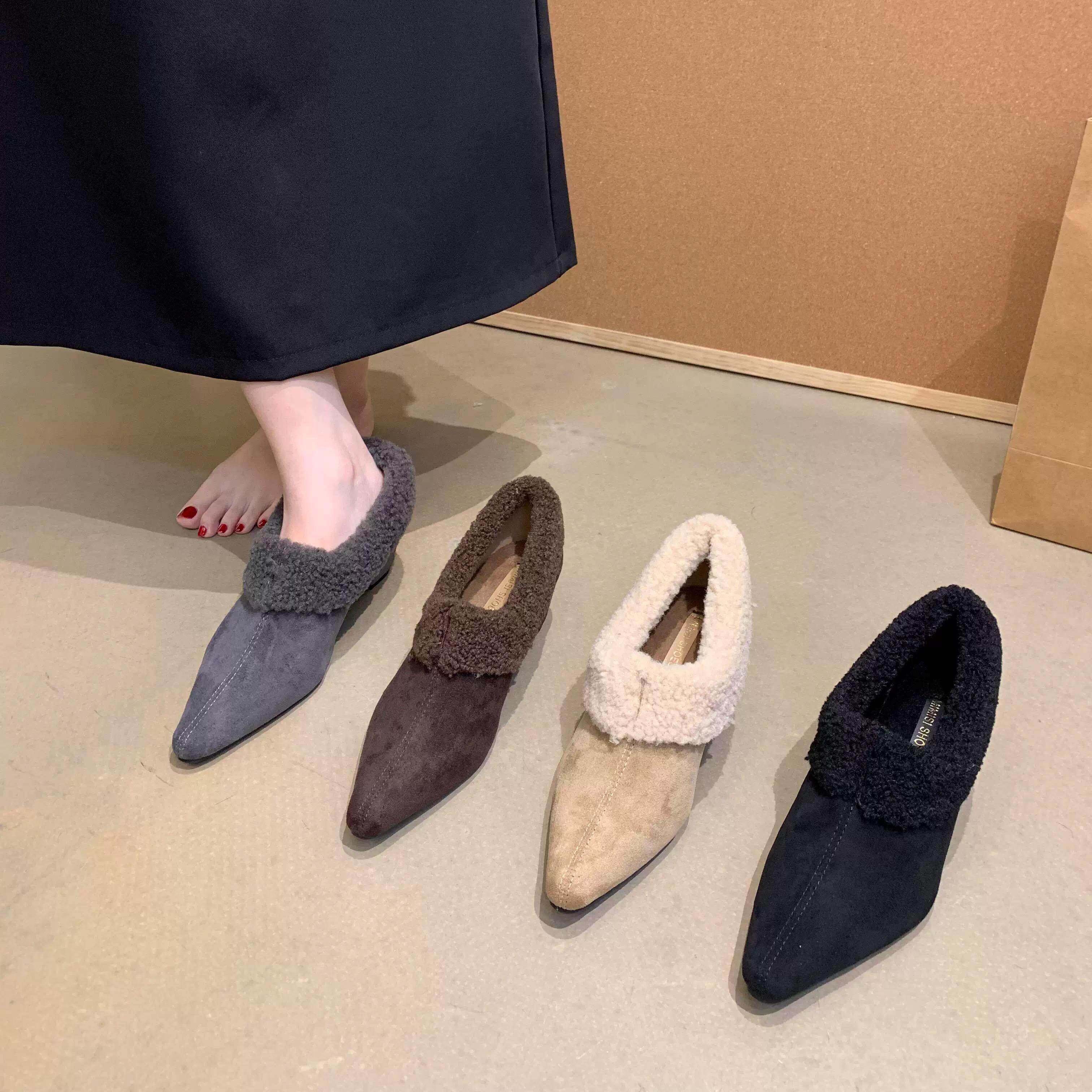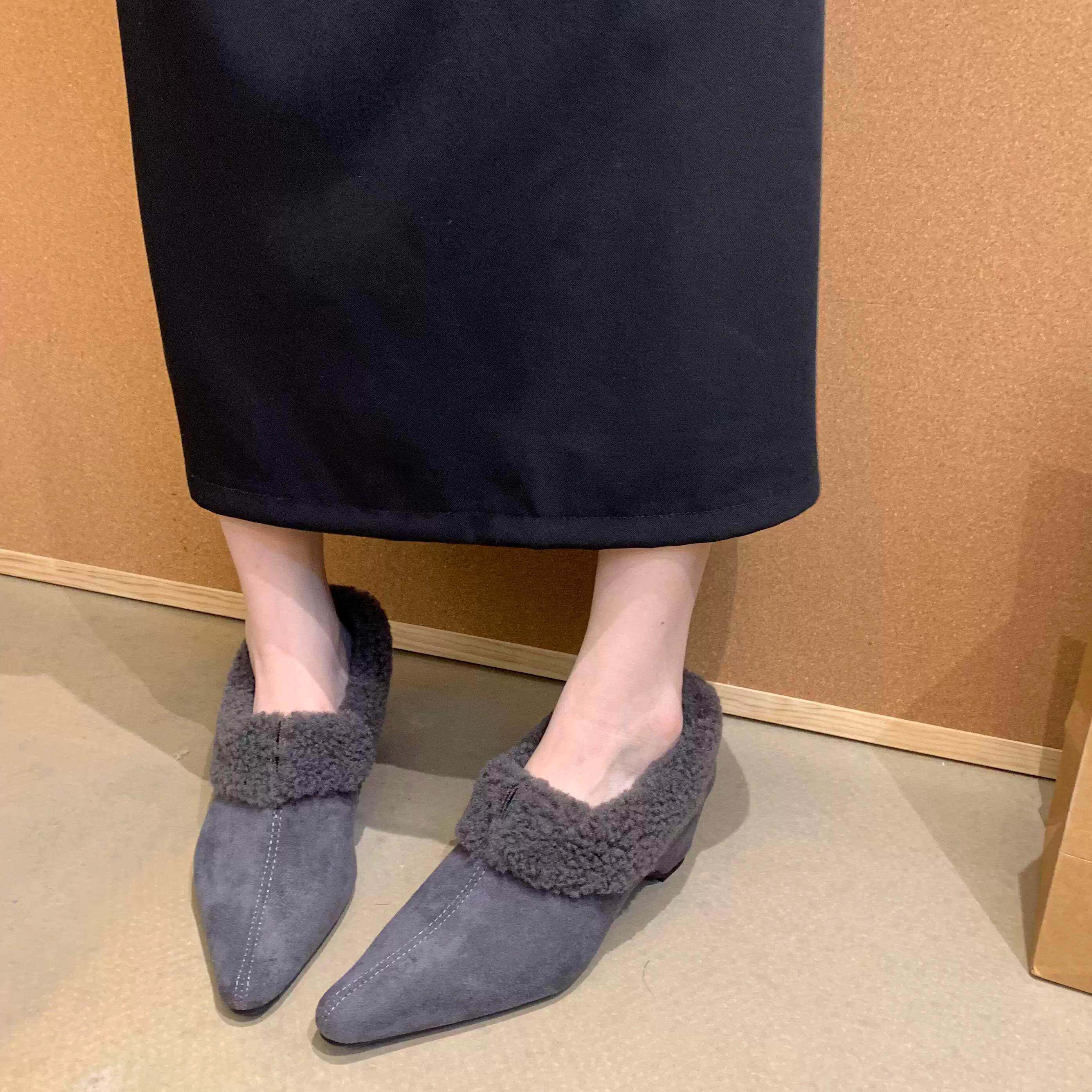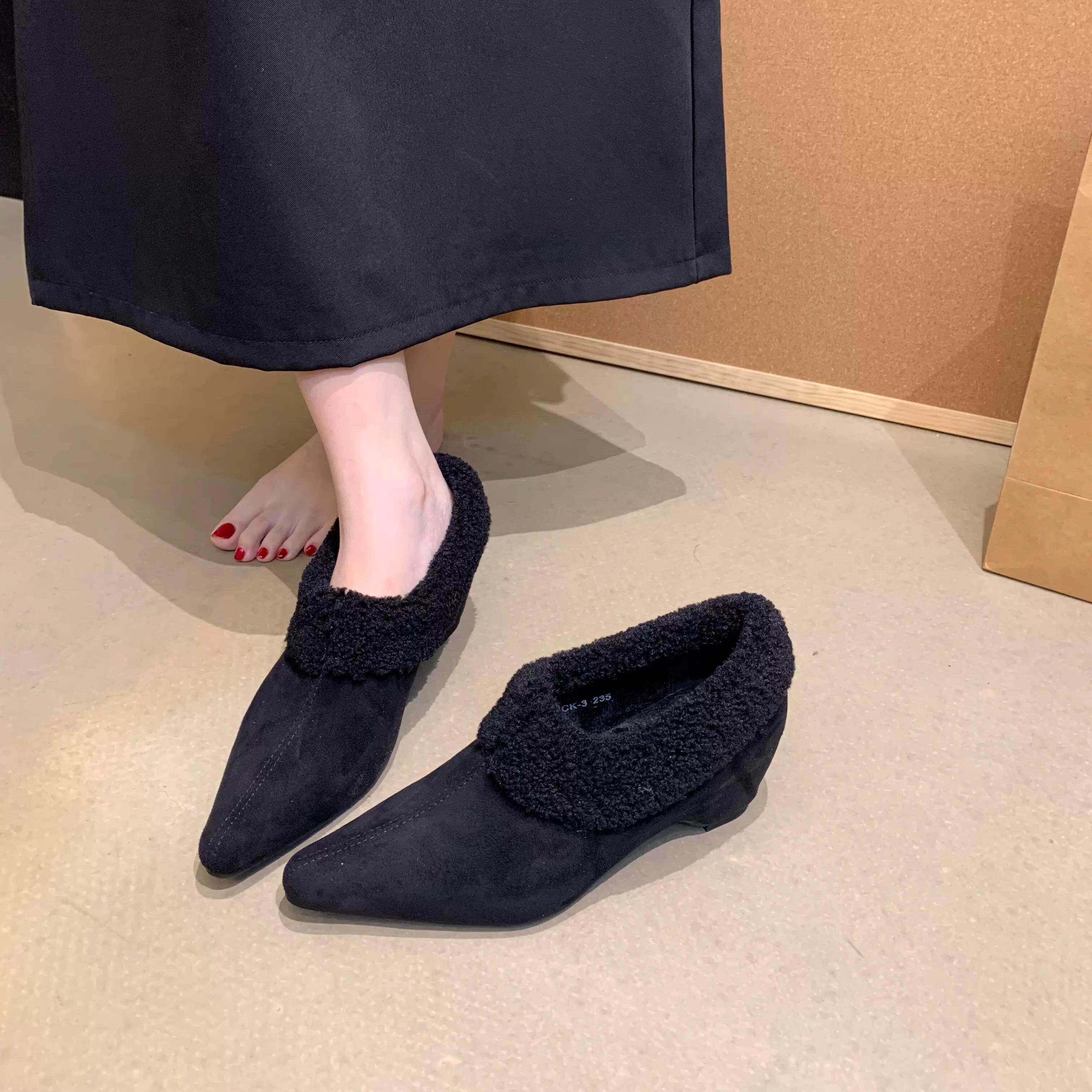 📚 潮牌内增高玛丽珍毛毛鞋女2025新款冬季加绒保暖棉鞋尖头平底单鞋