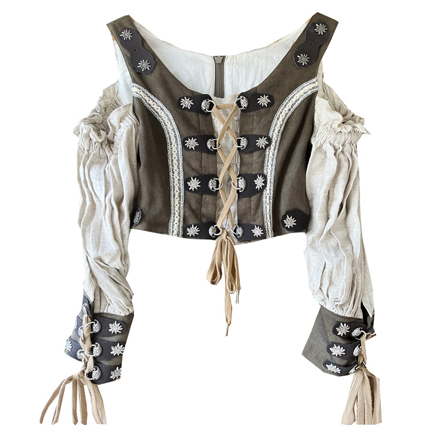 📚 理想三旬女装自制灰青色复古巴伐利亚蕾丝拼重工vintage短上衣