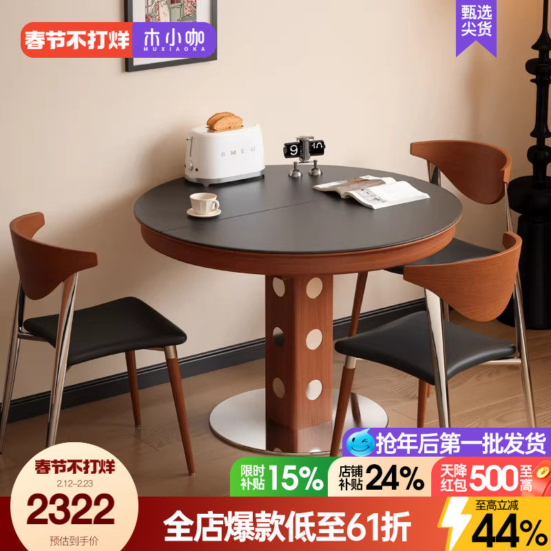 📚 木小咖黑色新款法式复古实木伸缩餐桌椭圆折叠圆桌家用小户型桌子