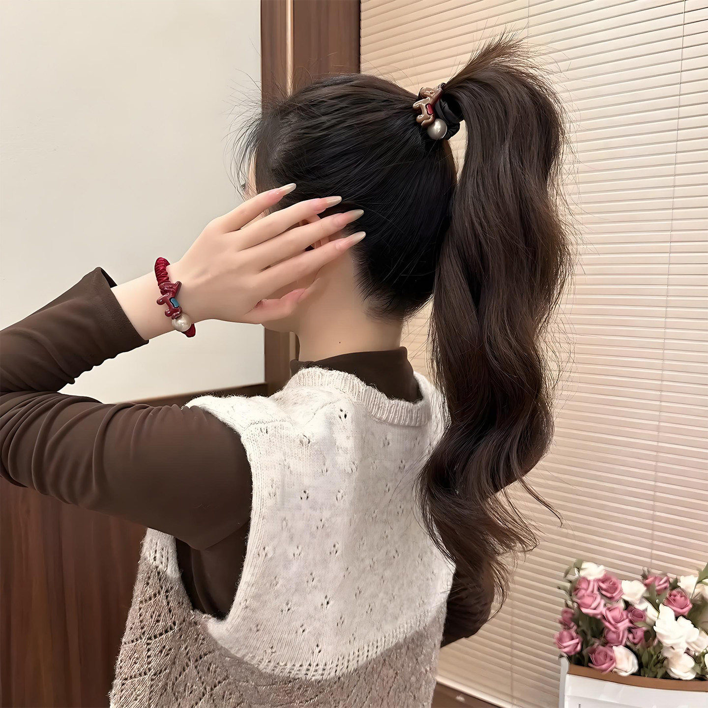 📚 卡通小马珠子无痕牛奶丝发圈新款简约温柔扎发橡皮筋高弹力发绳女