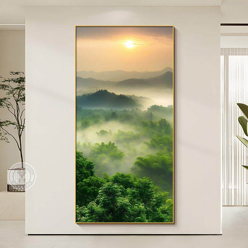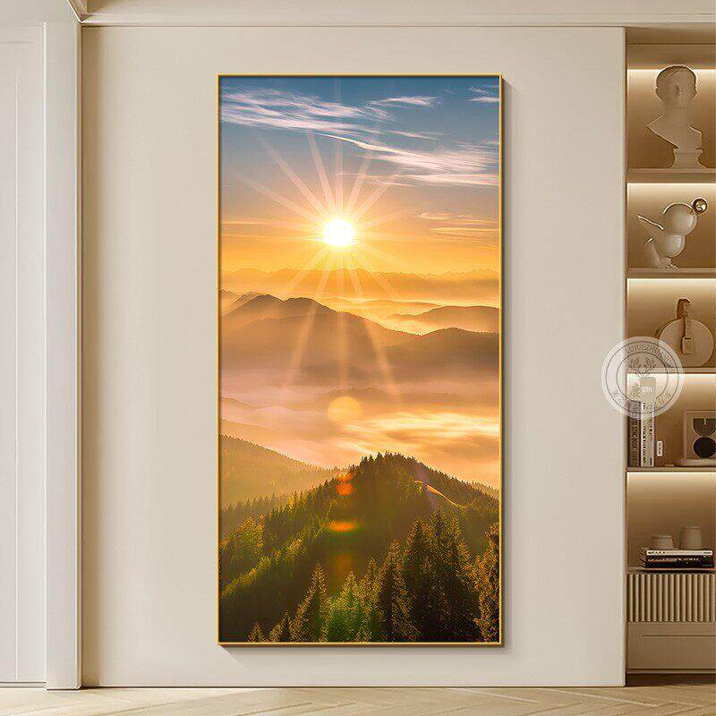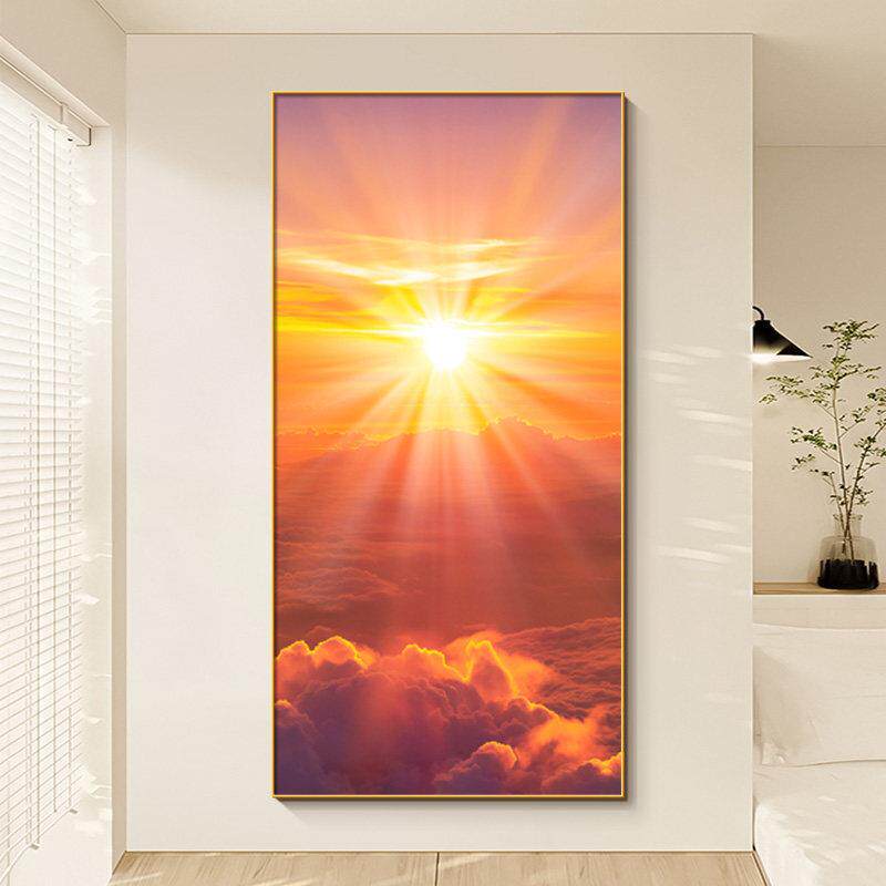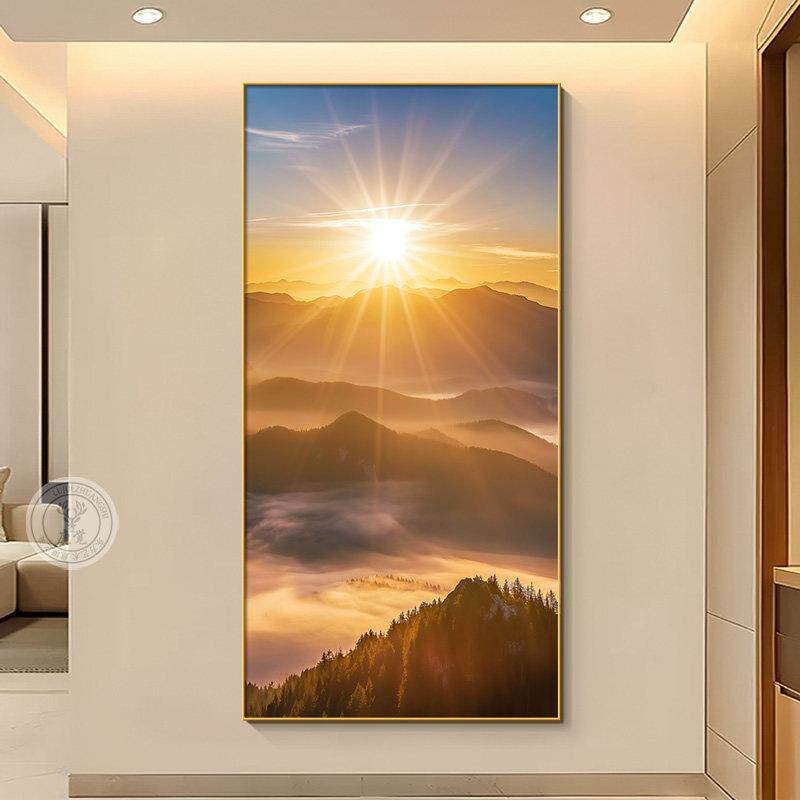📚 日出东方正对门玄关挂画现代简约客厅走廊过道装饰画写实风景壁画