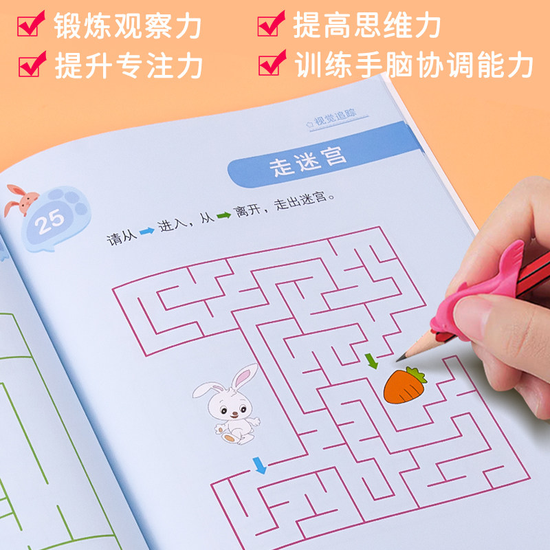 📚 【全3册】认识钟表和时间相关连线视觉追踪练习册大班专项训练视觉图形辨别找相同专注力训练幼小衔接一年级数学时分秒教具启蒙书