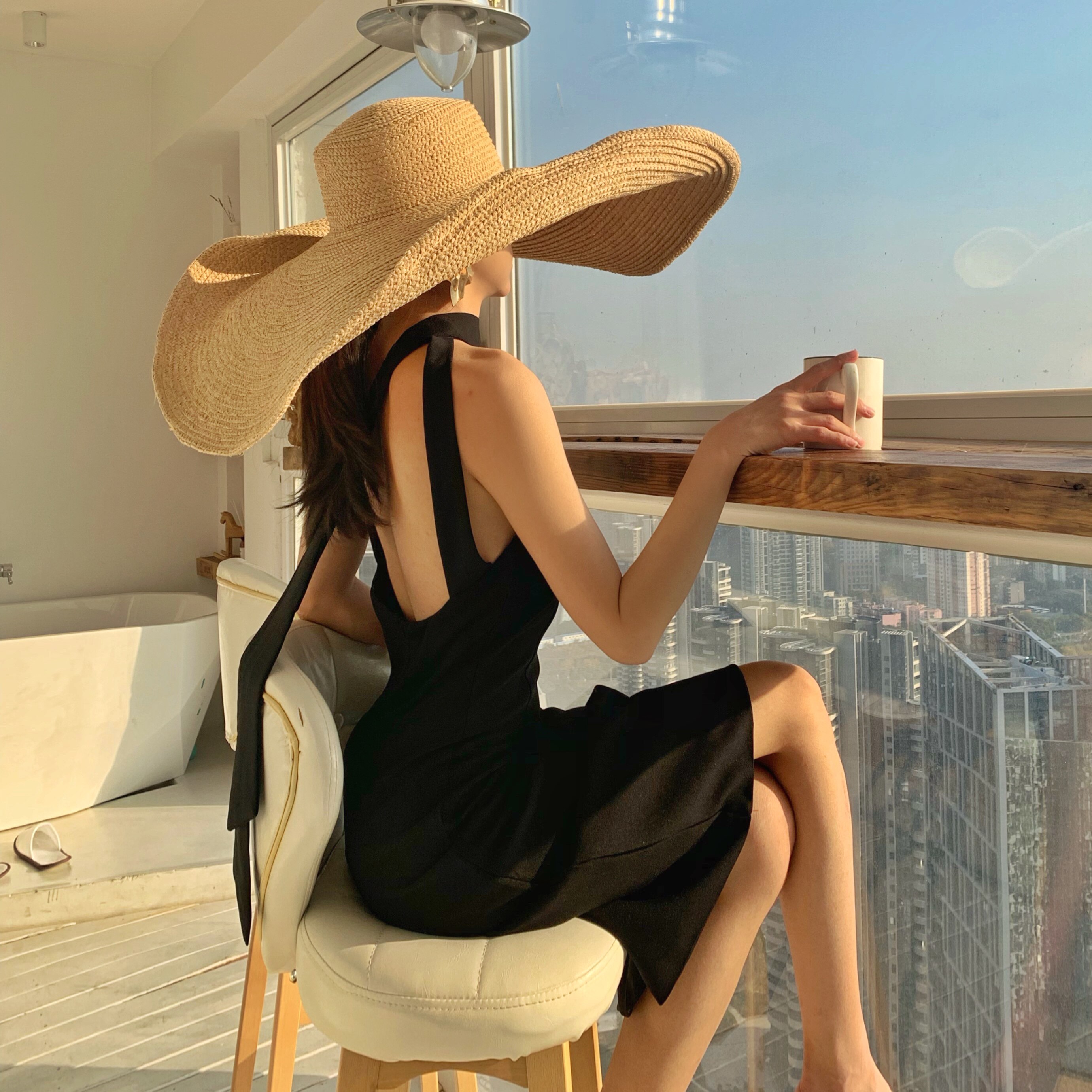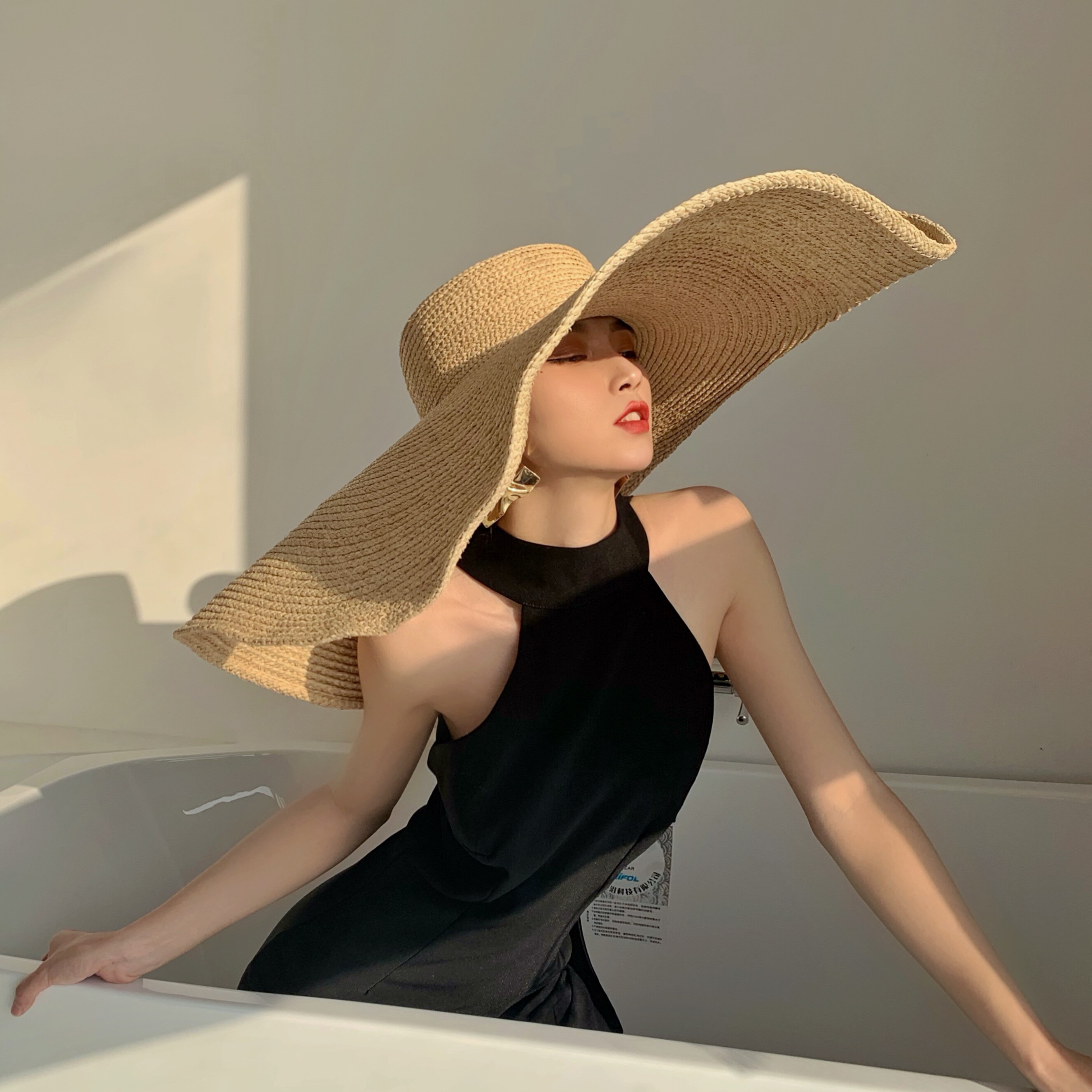 📚 欧美风卷边拉菲草编织大沿遮阳帽子女夏海边度假沙滩帽大帽檐草帽
