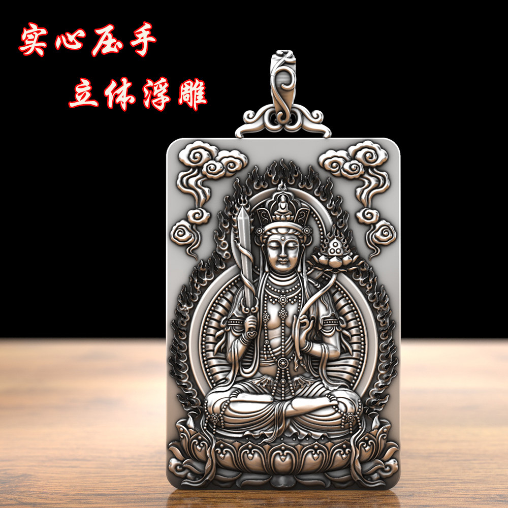 📚 实心纯银46大银牌大势至本命佛生肖守护神属马大尺寸银牌项链男