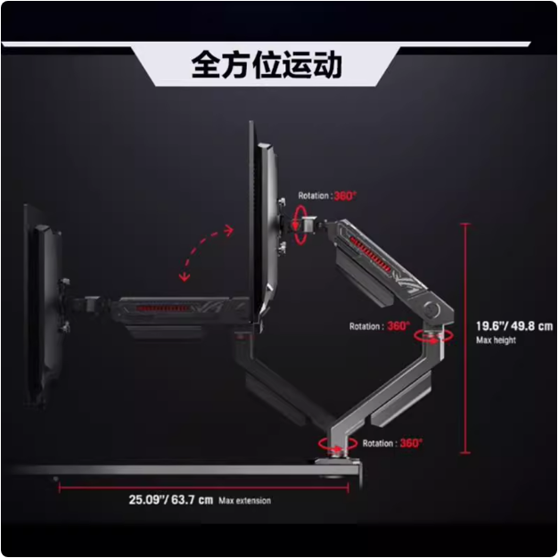 📚 华硕ROG Ergo AAS01擎天显示器支架 桌面免打孔 多角度移动机械臂
