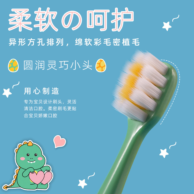 📚 儿童软毛牙刷1-3-6-9-12岁高密细软丝刷毛呵护宝宝牙龈恐龙造型
