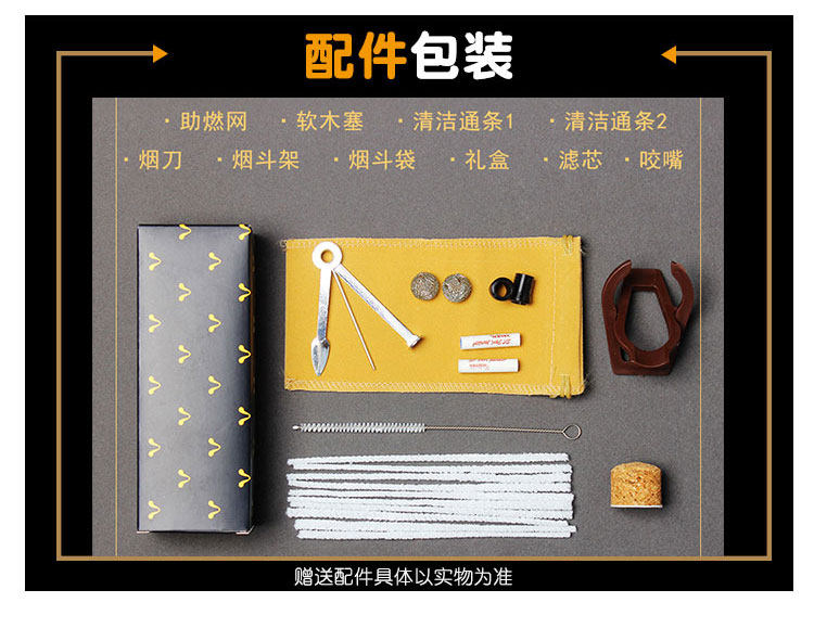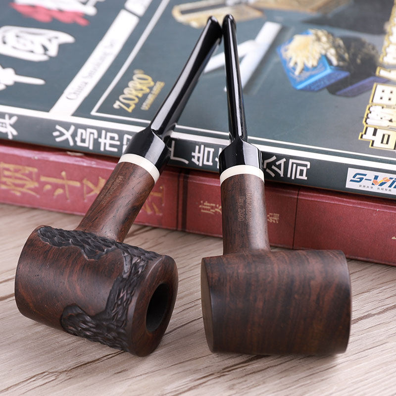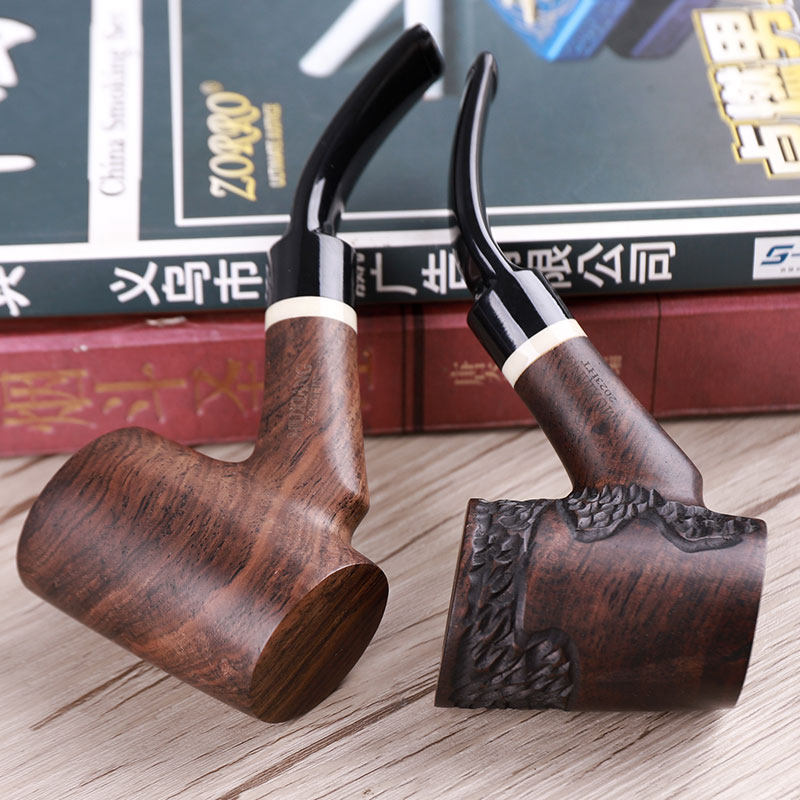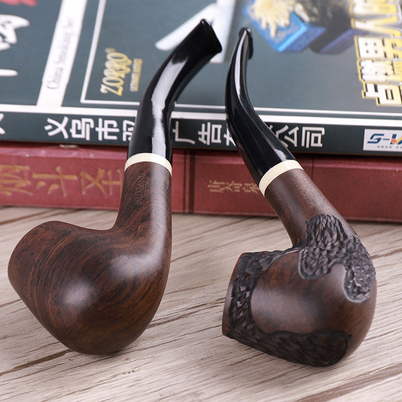 📚 黑檀木烟斗男士手工实木直柄老式传统过滤烟锅弯式专用烟斗具配件