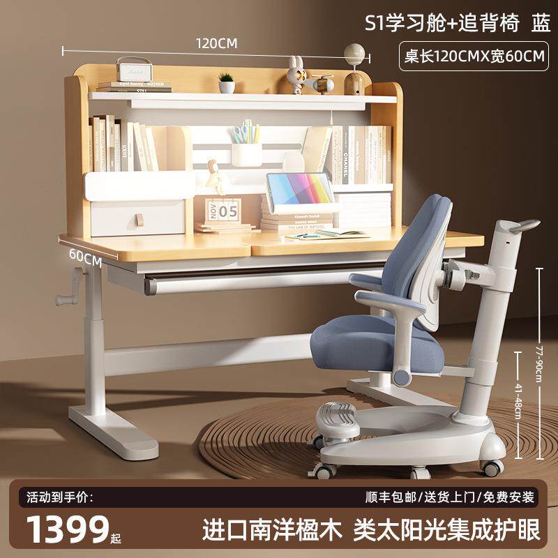 📚 龙承匠人儿童学习桌小学生书桌可升降桌子实木家用课桌椅S1学习舱