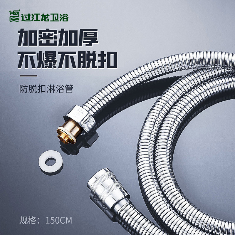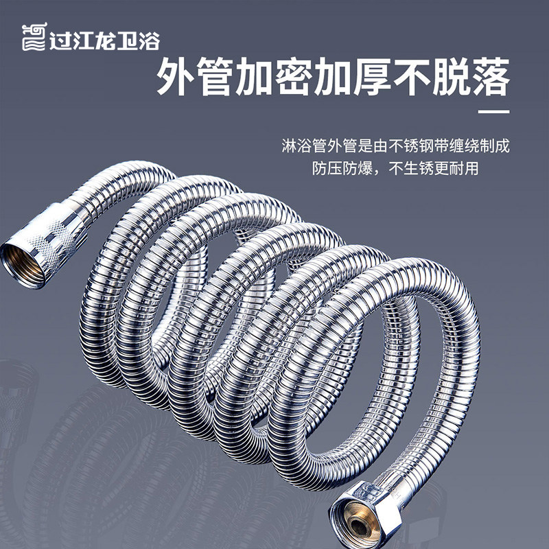 📚 过江龙花洒软管通用防爆防脱扣洗澡沐淋浴喷头1.5米不锈钢加密管