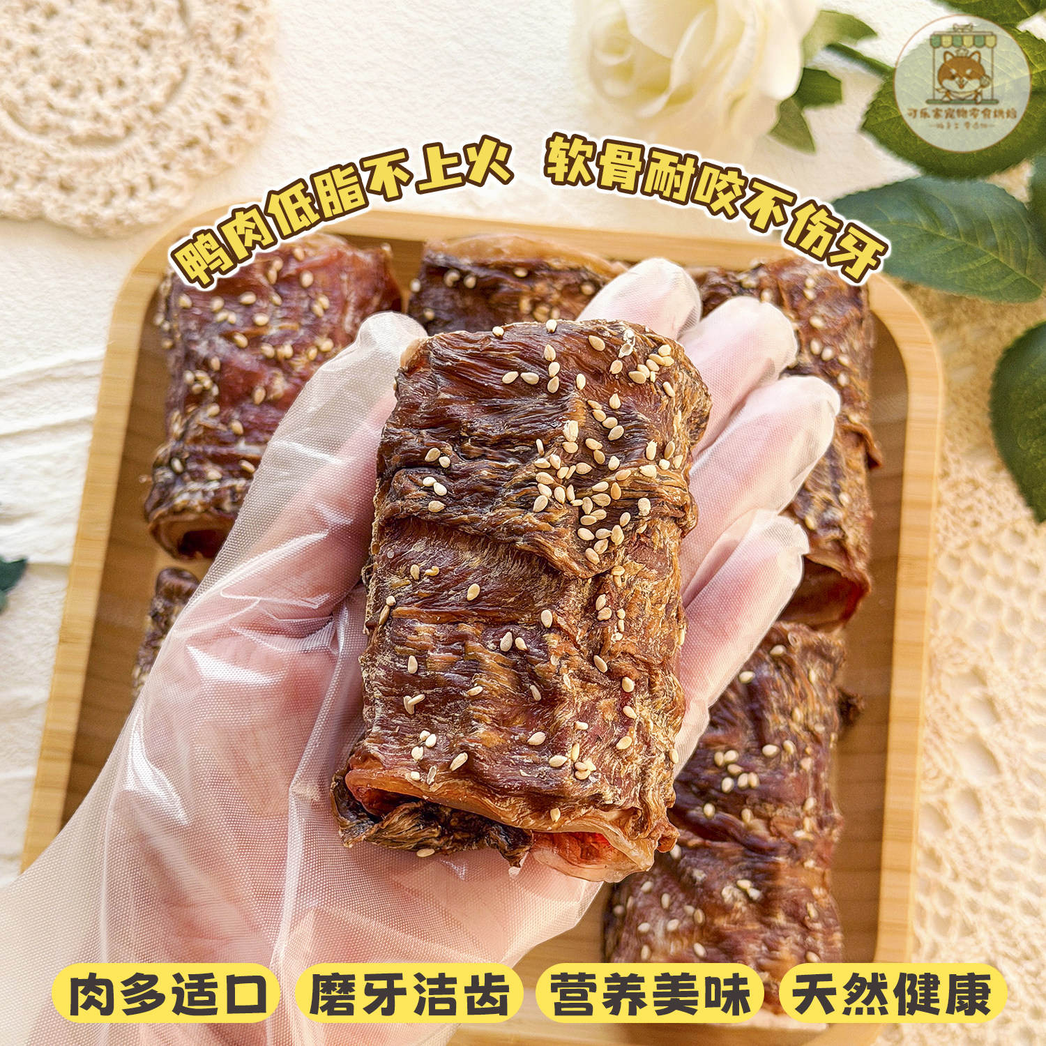 📚 纯手工自制宠物零食烘干鸭肉缠牛喉管中大型狗狗磨牙洁齿棒软骨素