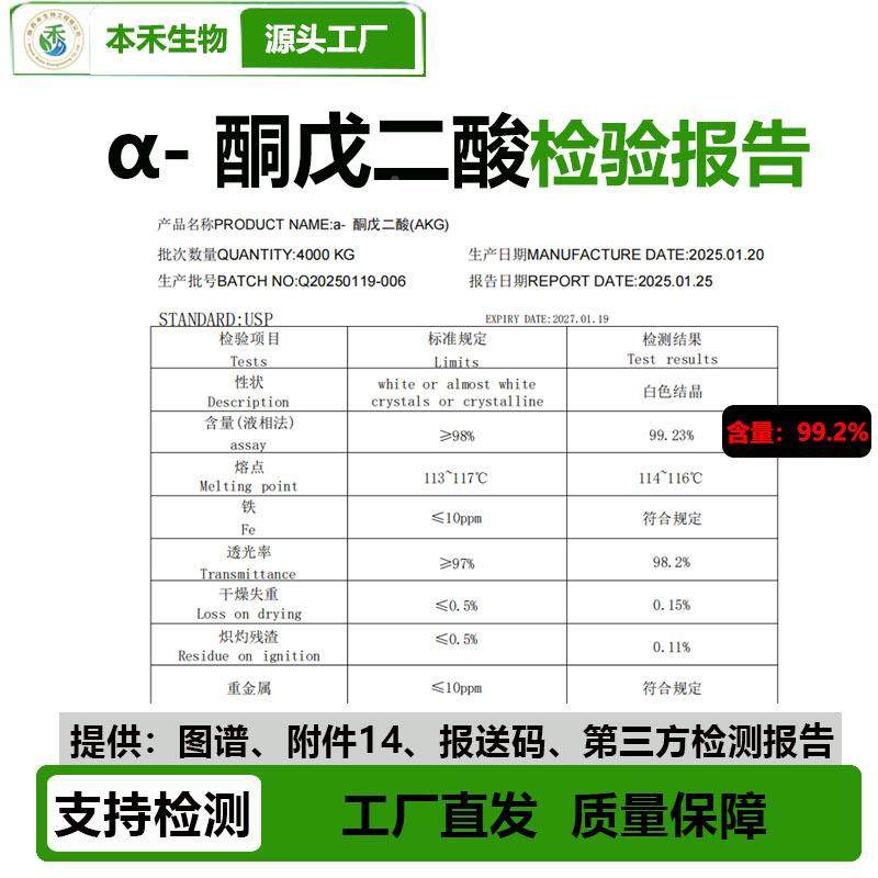 📚 1k7g/袋Gα568-酮戊二酸99AK酮戊二酸CAS:328-50-本禾厂家现%货
